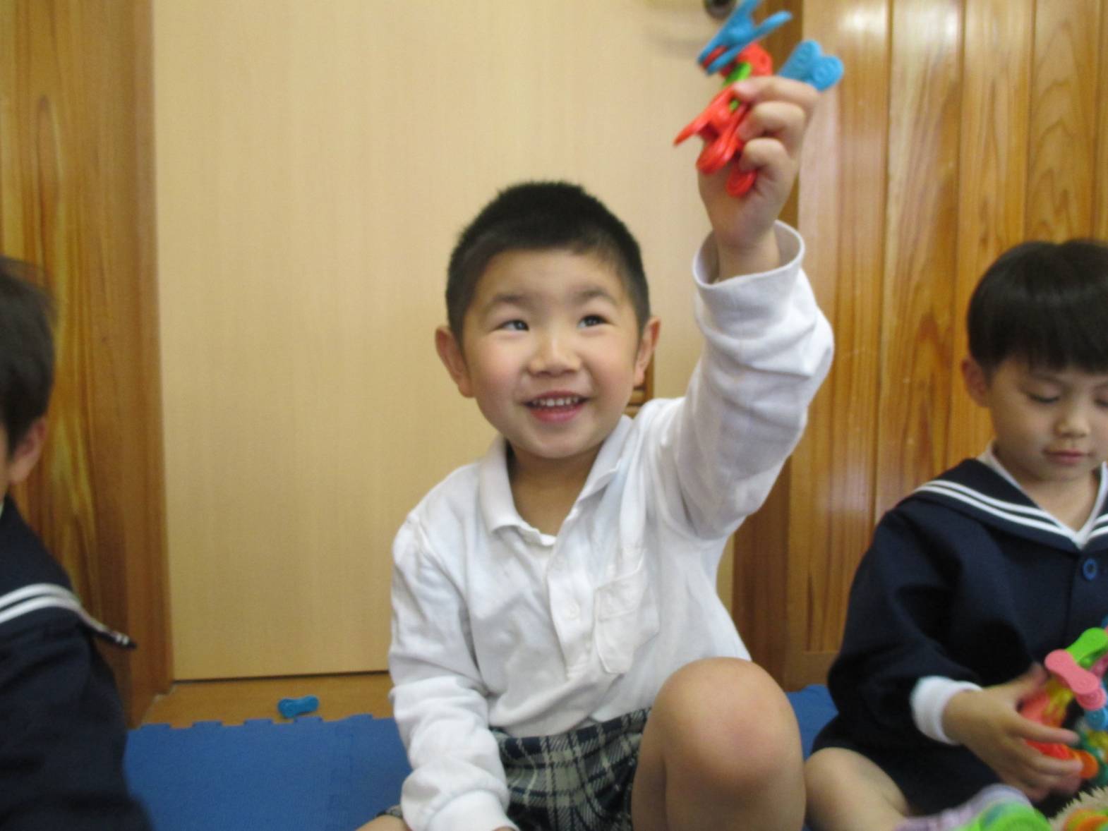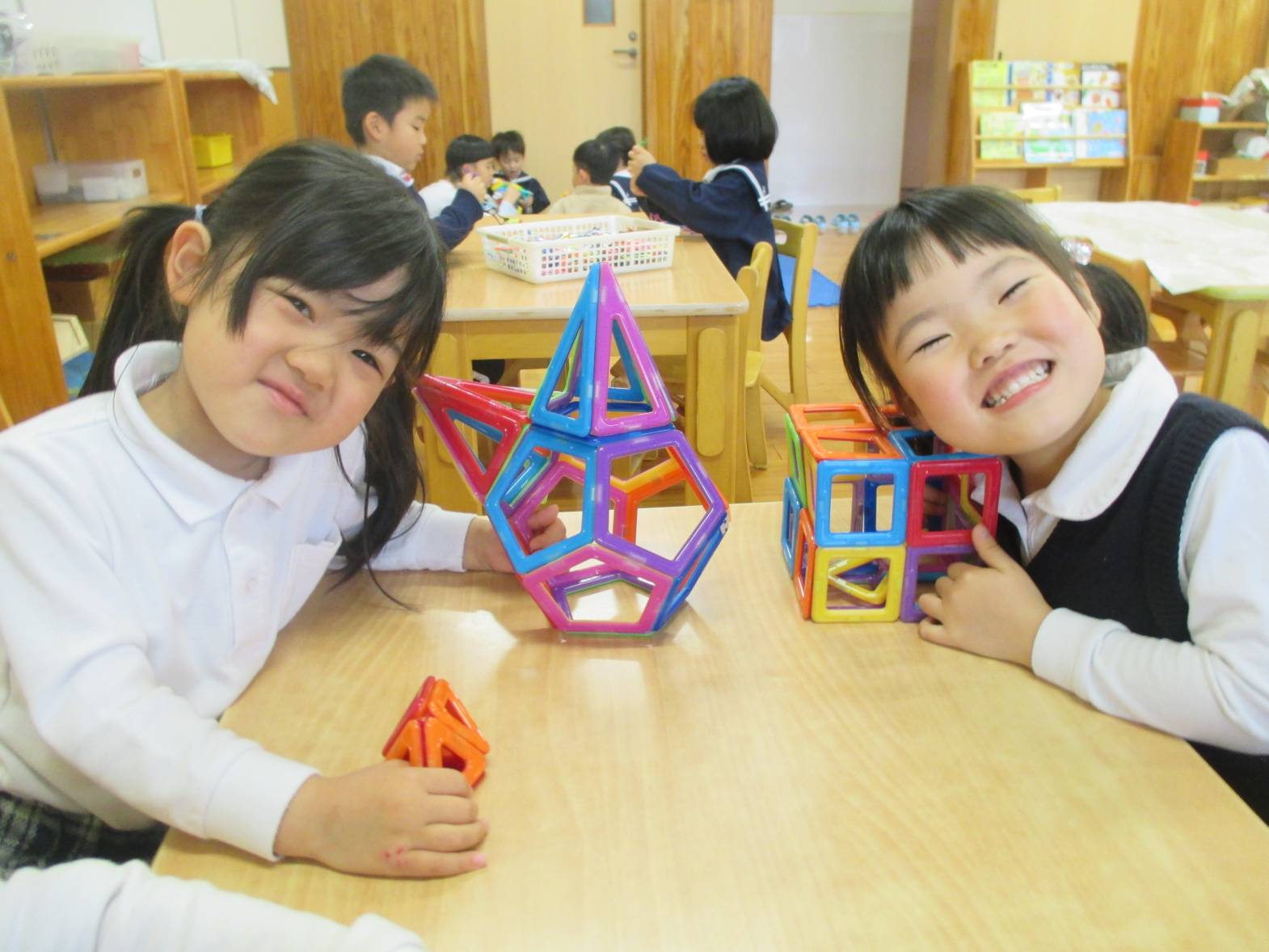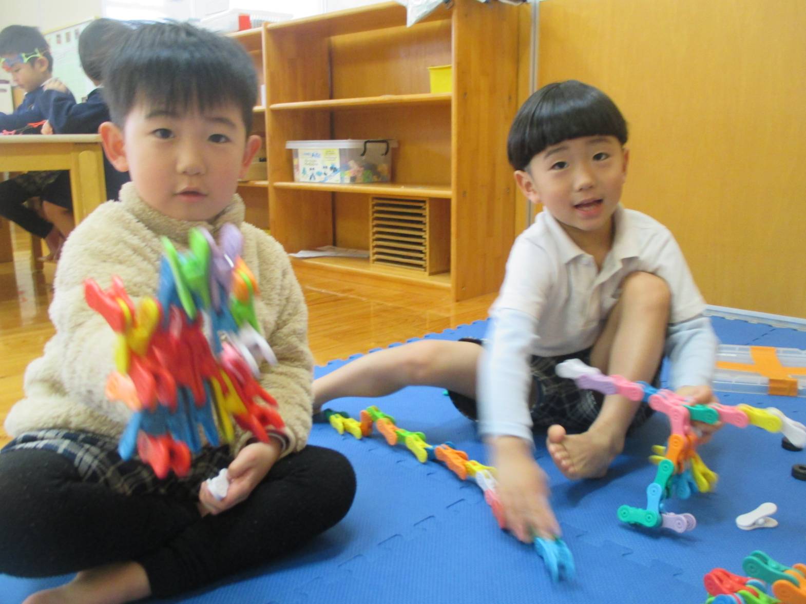 「うさぎ組さんにはマグブロックがあって面白いな。」、「アイクリップで大きなロボット作ってみたよ!」と、うさぎ組にある玩具に興味津々の様子があり、楽しく遊ぶことができました♪