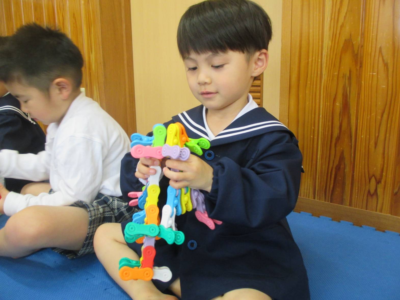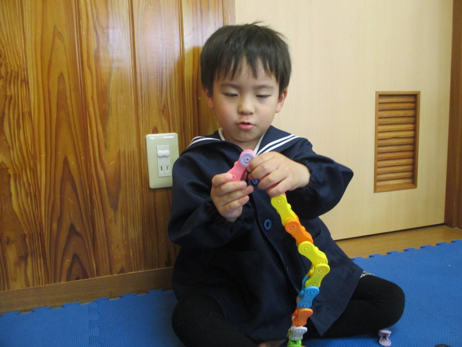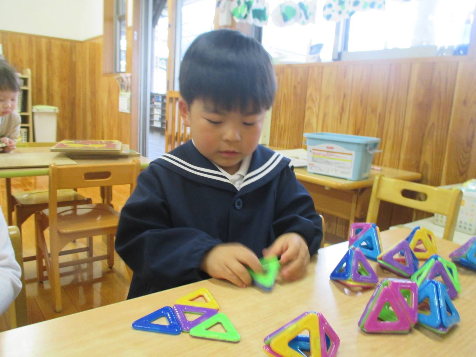 「うさぎ組さんにはマグブロックがあって面白いな。」、「アイクリップで大きなロボット作ってみたよ!」と、うさぎ組にある玩具に興味津々の様子があり、楽しく遊ぶことができました♪