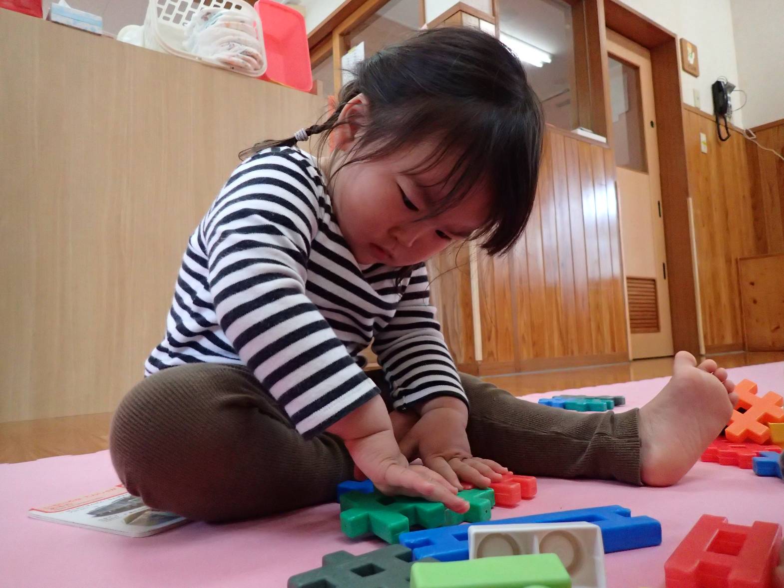こあら組さんになり1週間が経ちました。 慣れない環境に涙が出ていた子どもたちも、今では笑顔で過ごす時間が増えてきました。 好きなおもちゃを手に取ったり、体を動かしたりと色んな遊びに興味を持っています。 これからみんなで楽しく遊ぼうね!