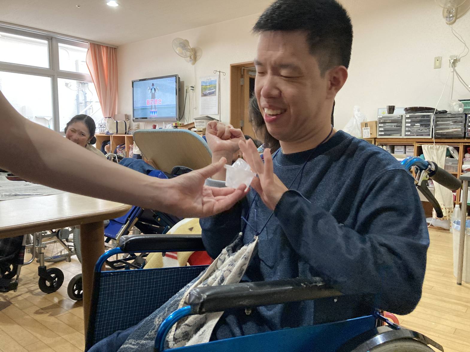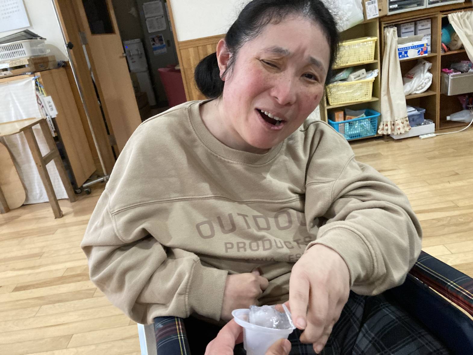 今日のレクリエーション活動は 「紐で氷を釣ってみよう!」をテーマに活動を行いました。 「冷たいね!」 と、驚いた表情であったり目をギュッと閉じながらも、最後は笑顔で皆さんペタペタと氷を触ることができました。 紐で氷を釣るにはどうすればいいか皆さんと一緒に考えて・・・ 塩を振ってしばらくしてから、紐を引っ張ると上手に氷を釣ることができました! 「見て見て、上手にできたよ!」と、笑顔で話してくれました。 今回の実験活動も楽しんでいただけでしょうか? 次回の活動も楽しみにしておいてくださいね。