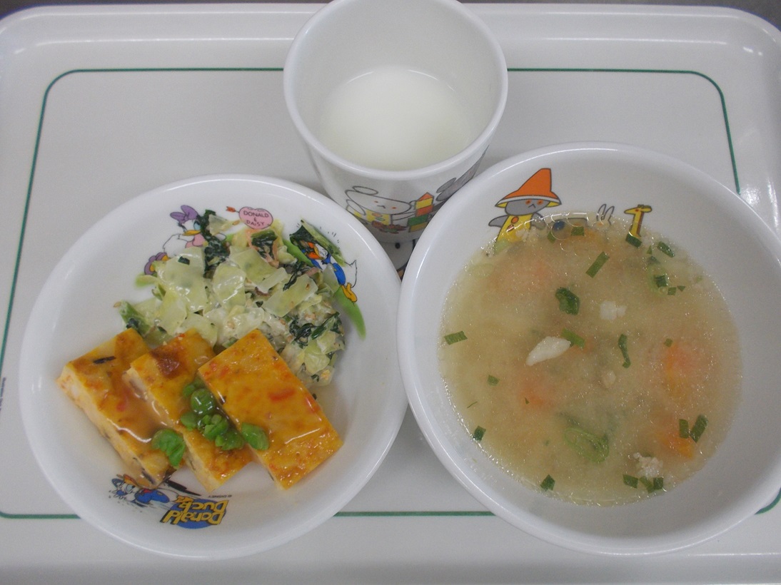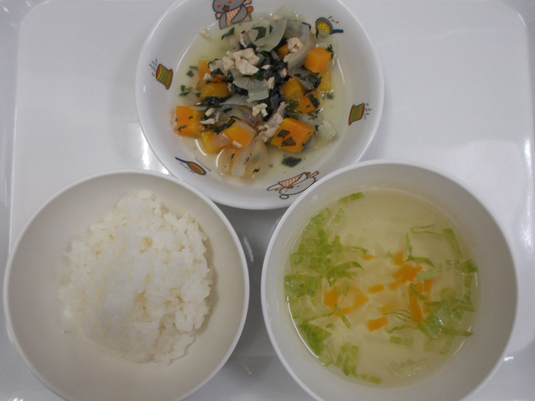 4月8日(月)から4月13日(土)までの給食献立写真・離乳食提供量と写真の一例です。