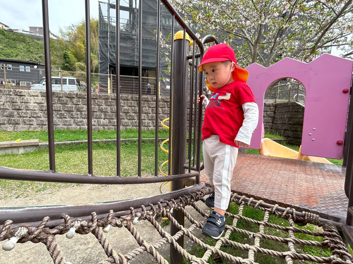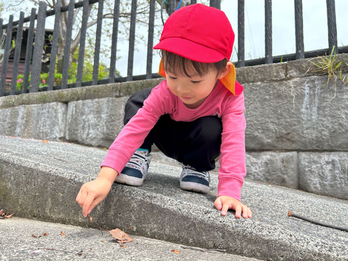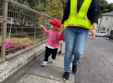 戸外活動で広木第二公園に行きました! 職員と手を繋いで公園まで歩いて行く子どもたち。 「あれは何?」、「あ!お花!」と話をしながら楽しそうに歩く姿が見られます! 公園に着くと川を見たり、葉っぱで遊んだり、遊具で遊んだりして楽しみました。 「楽しかった!」「また行きたーい!」と話すいぬグループさんでした!
