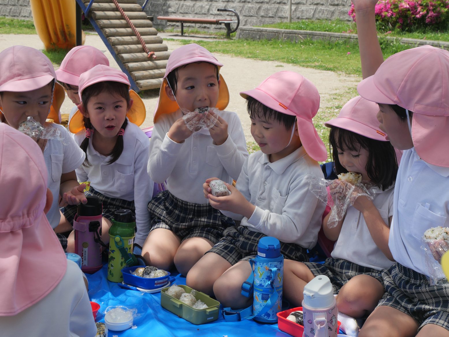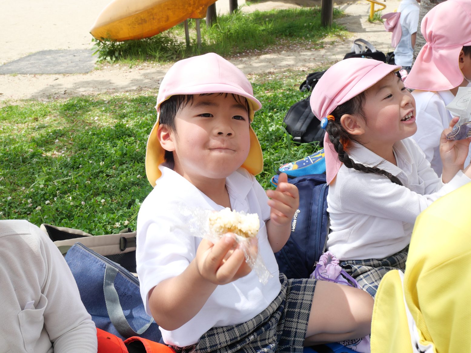 「おなかいっぱい。」「公園で遊んで食べるの楽しかった!」と、嬉しそうに話していました。