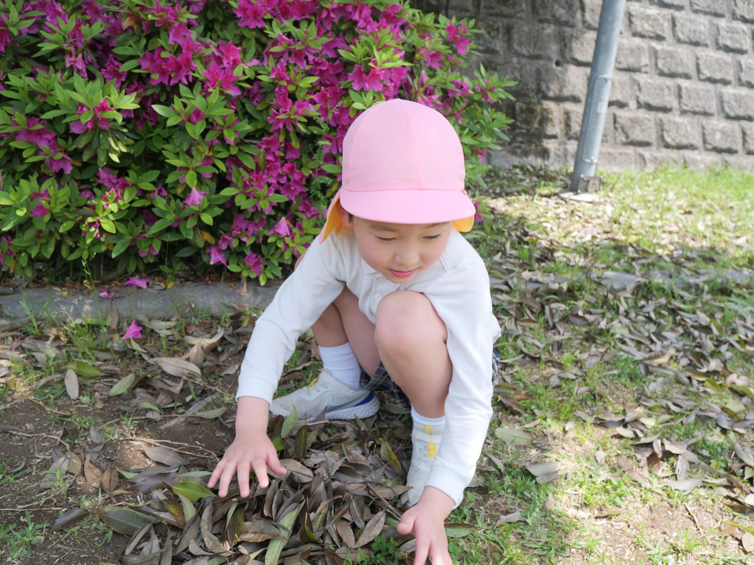 また途中で落ち葉や花を見つけると、「これは何てお名前?」「なんかフサフサしている。」と様々な発見をしていましたよ。