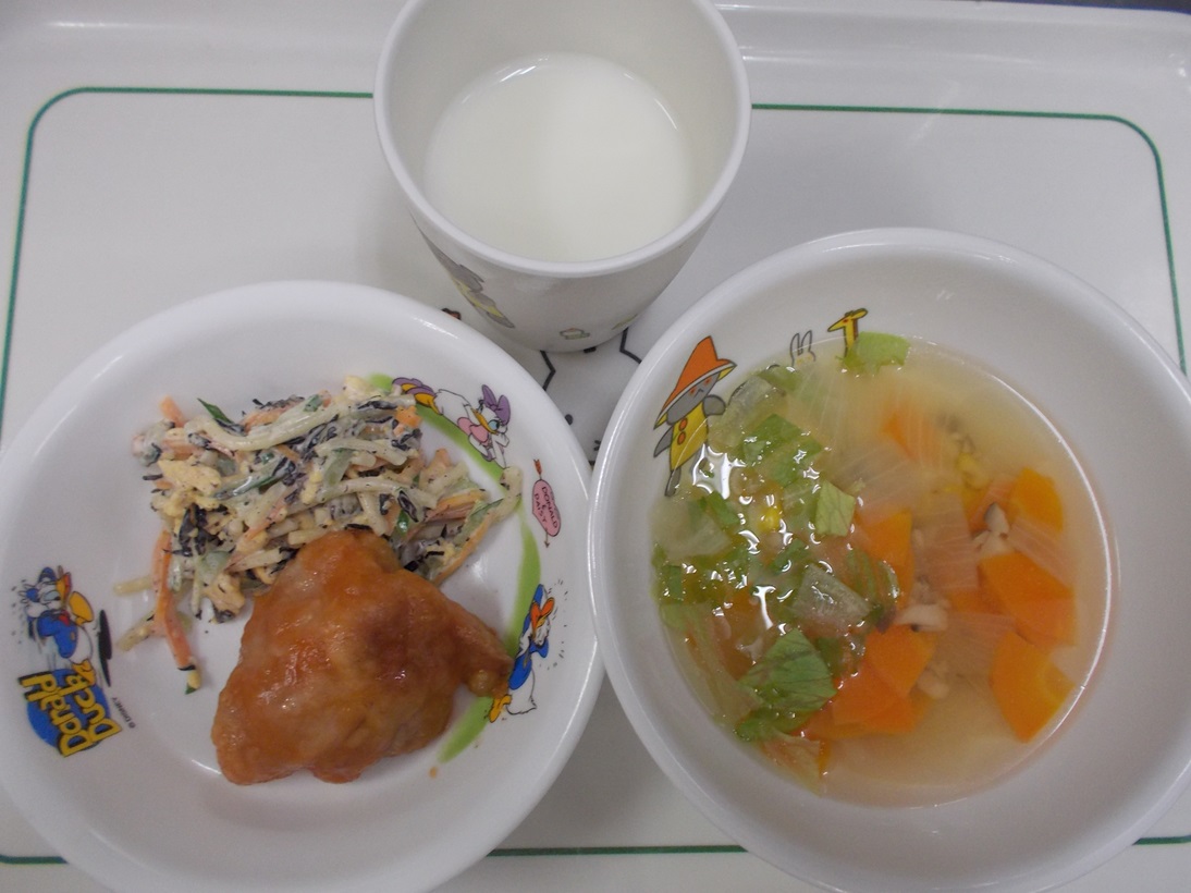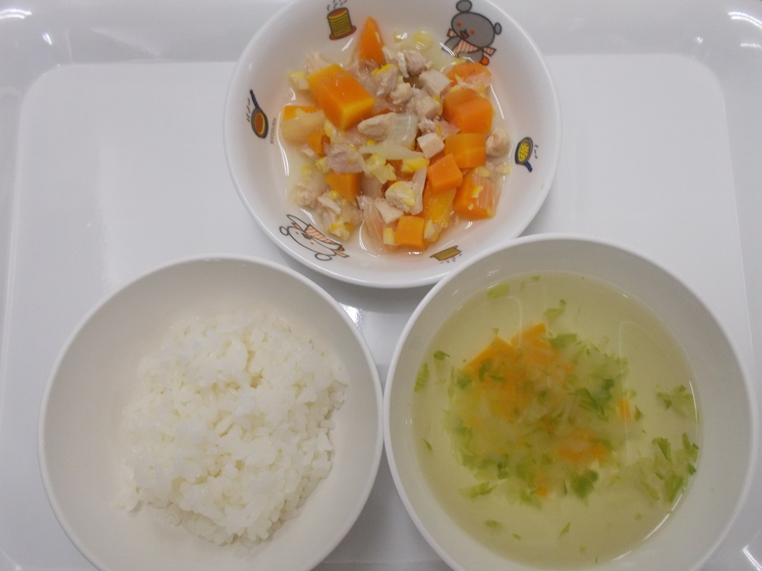 4月15日(月)から4月20日までの給食献立写真・離乳食提供量と写真の一例です。