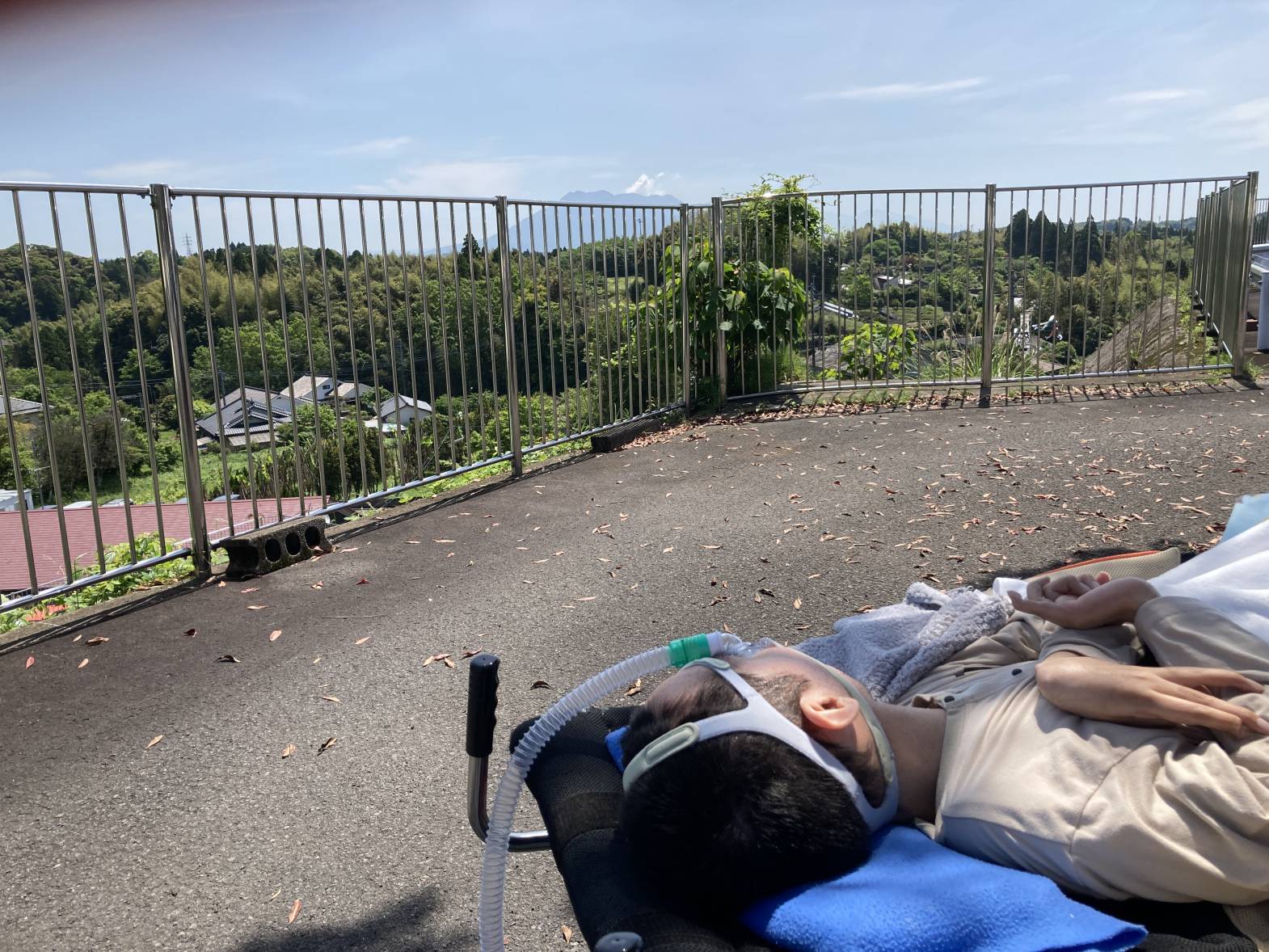 今日はとても天気が良かったですね! 今日の活動は散策、活動にはぴったりの日になりました。 皆さんと一緒に誠光園の園庭で、ゆっくりと過ごしました。 「気持ちいいね」「気持ちいいね」 たまにはのんびりゆっくり過ごすのもいいですね。 雄大な桜島も見ることができました! 楽しくにぎやかなレクリエーションもいいですが、ゆっくり穏やかな活動もまた違った楽しさがありますね。