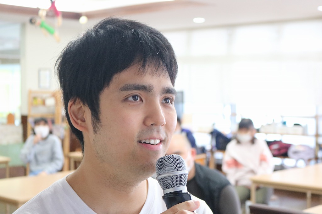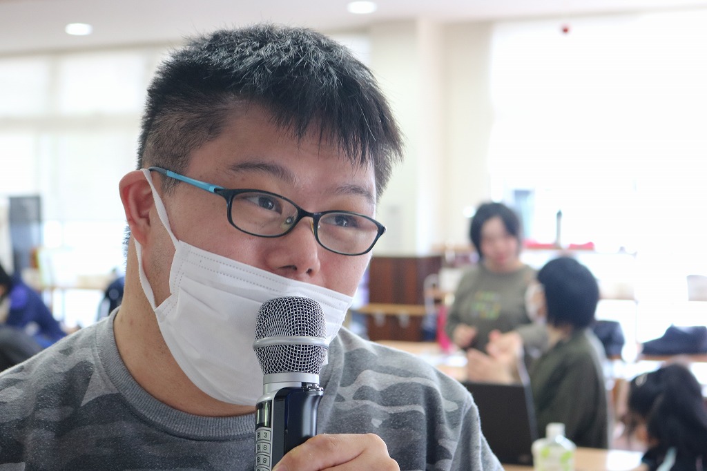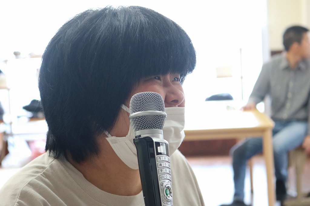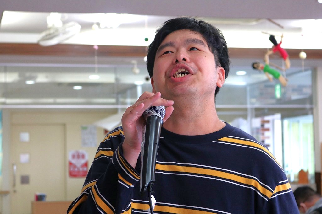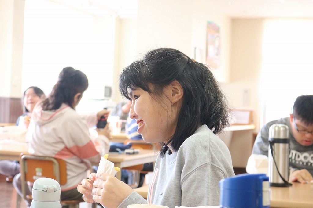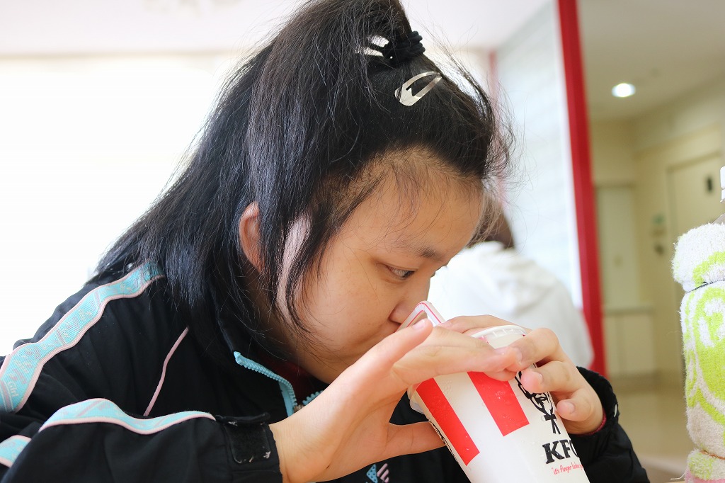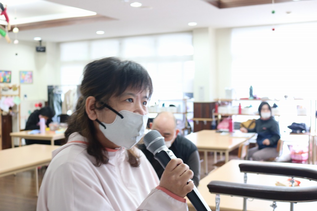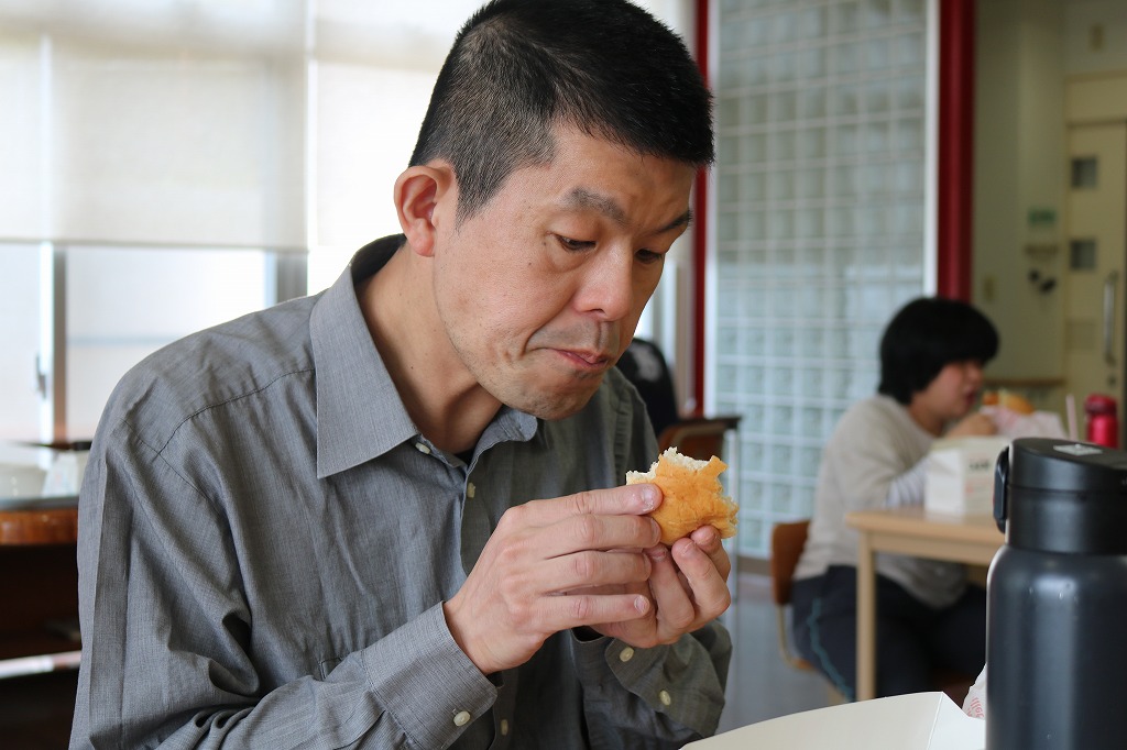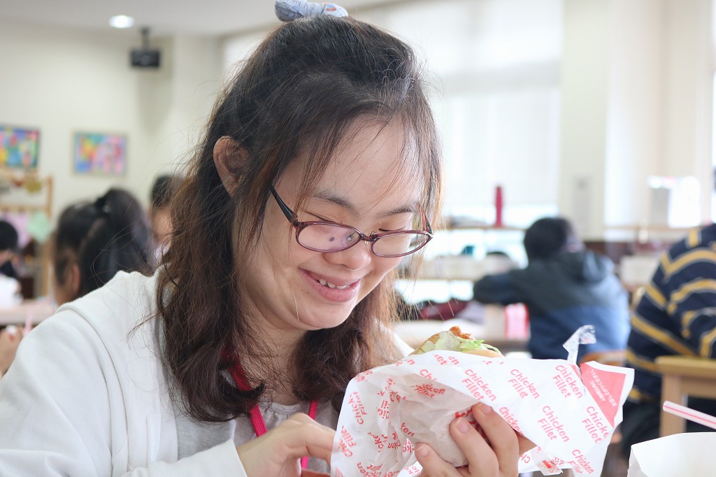 本日は、皆さんでカラオケを行いました。 ご自身で選曲した歌をそれぞれ楽しまれていました。 また、昼食時にはテイクアウト活動として、 チキンフィレバーガーセットを食べました。 「美味しい!」「うまい!」「最高だよ。」と笑顔で過ごしていました。