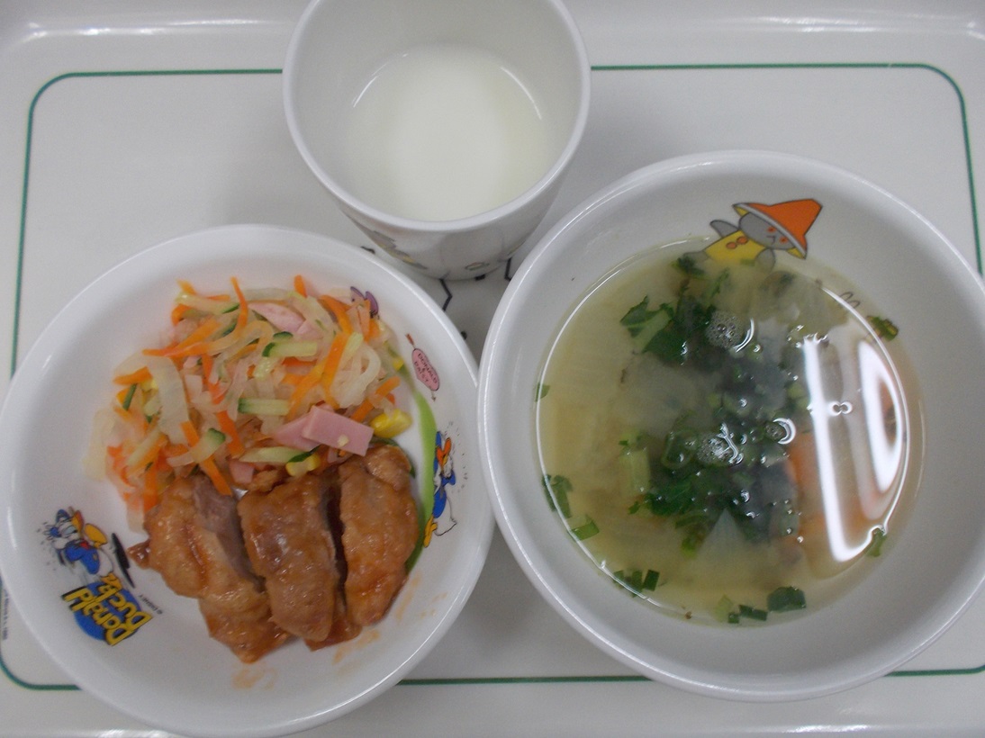 5月7日(火)から5月11日(土)までの給食献立写真・離乳食提供量と写真の一例です。