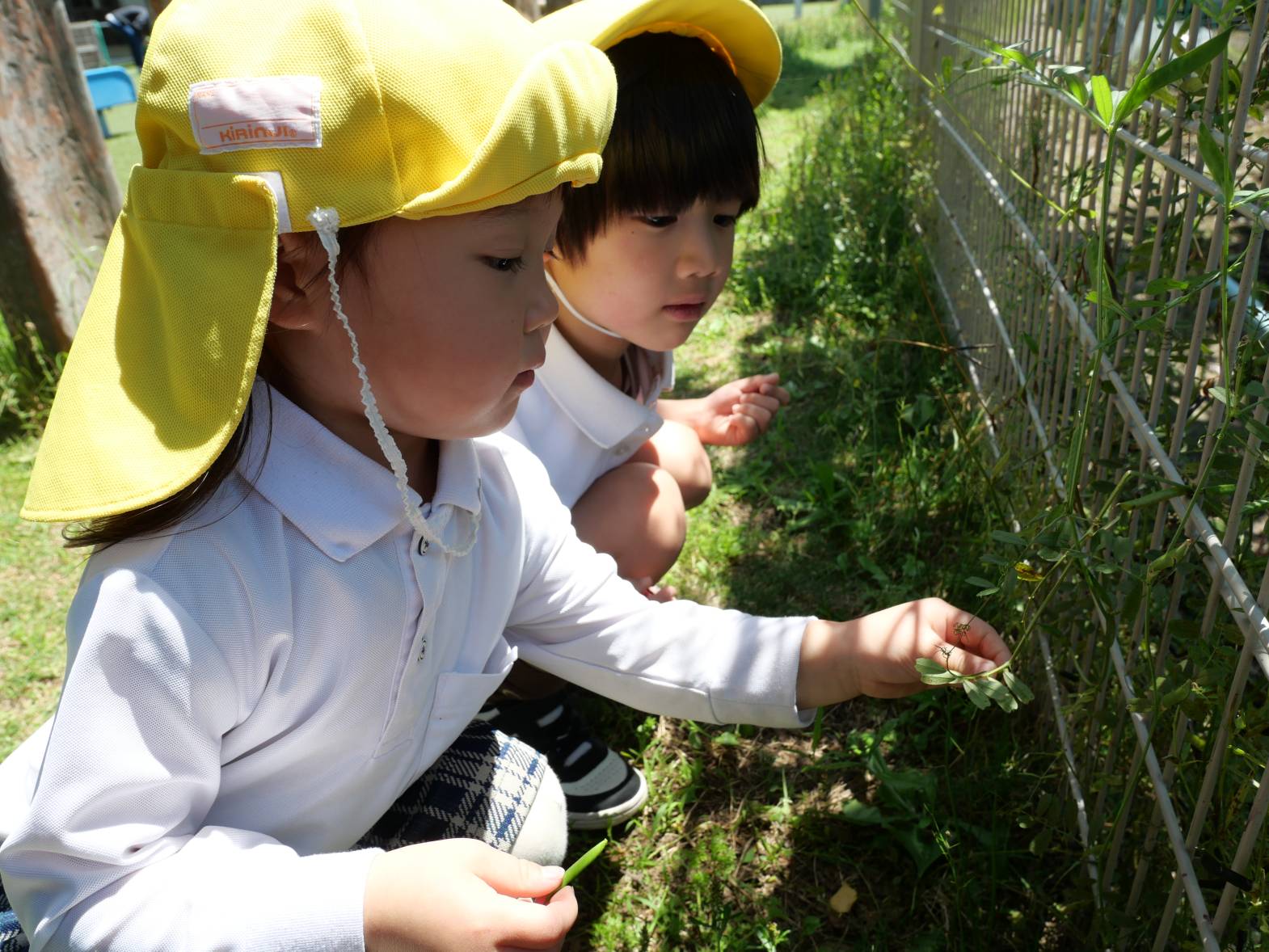 最近では子どもたちは戸外へ行き、生き物や植物を見つけ触れることを楽しんでいる姿が見られています。