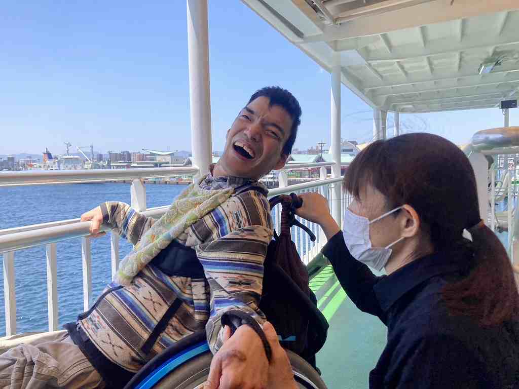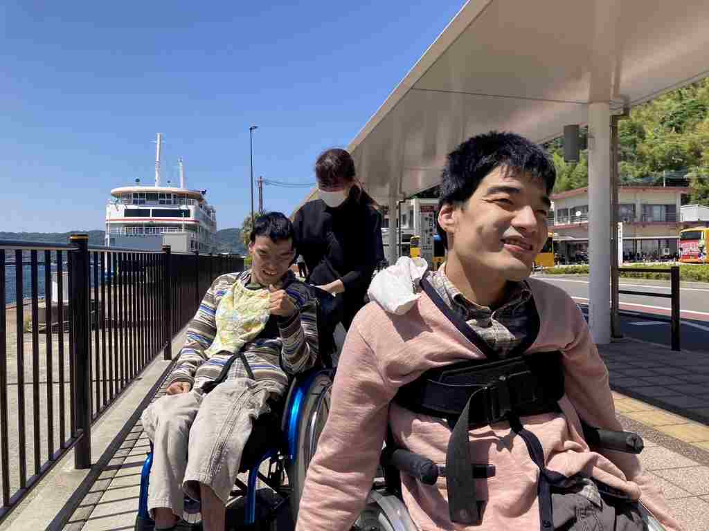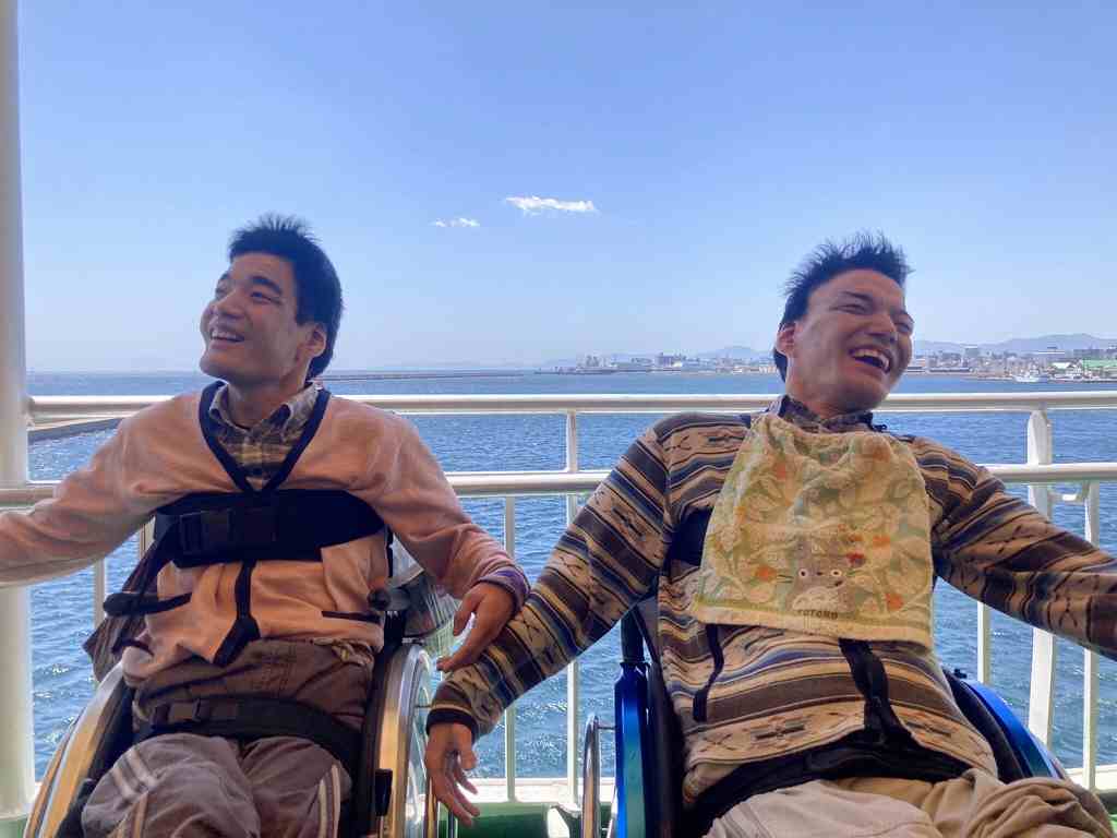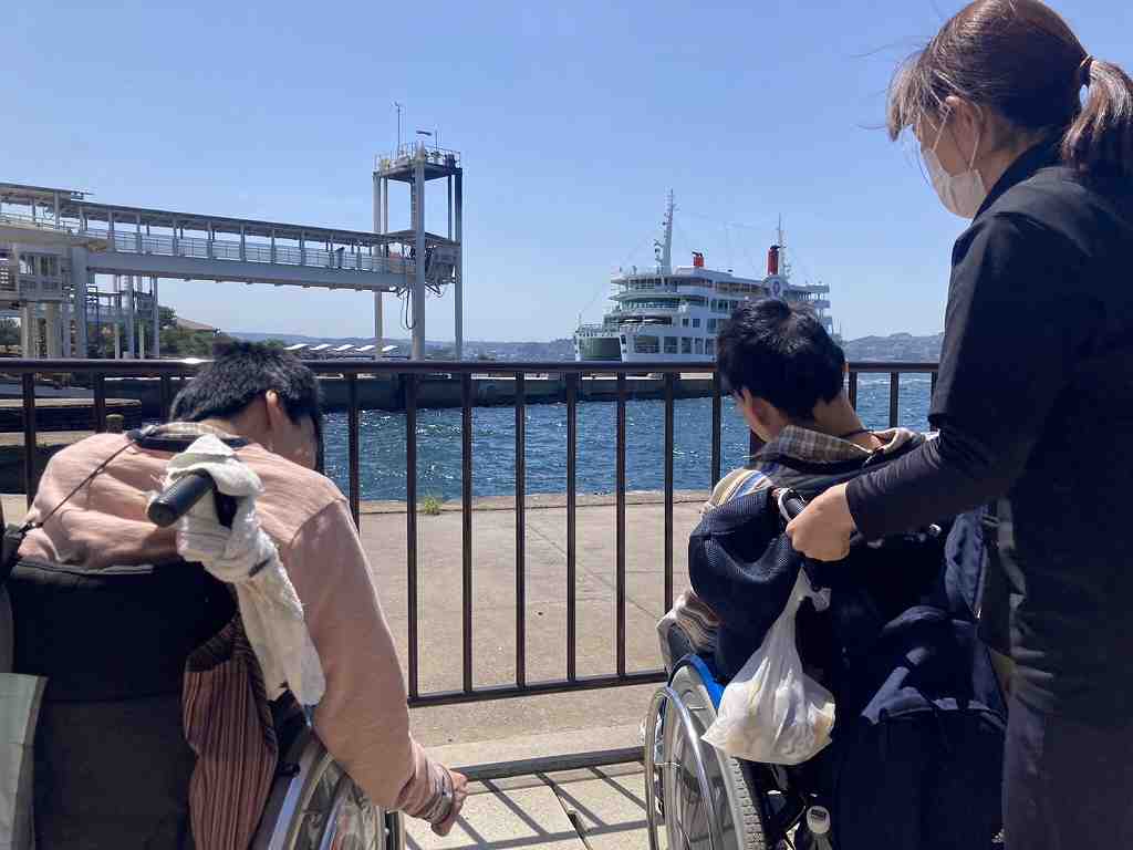 今日は少しだけ、風が強かったですがとてもいい天気でした! 太陽の光が波に反射し、キラキラ光ってとても綺麗でしたね! いよいよ出航!テンションも上がりますね! 屋上は風が吹き抜け、とても気持ち良かったです! フェリーから降りた後は、近くを散策しました。 潮風が心地よく、海やフェリーを眺めたりとゆっくりとした時間を楽しみました。 次回の外出活動も楽しみにしておいてくださいね!
