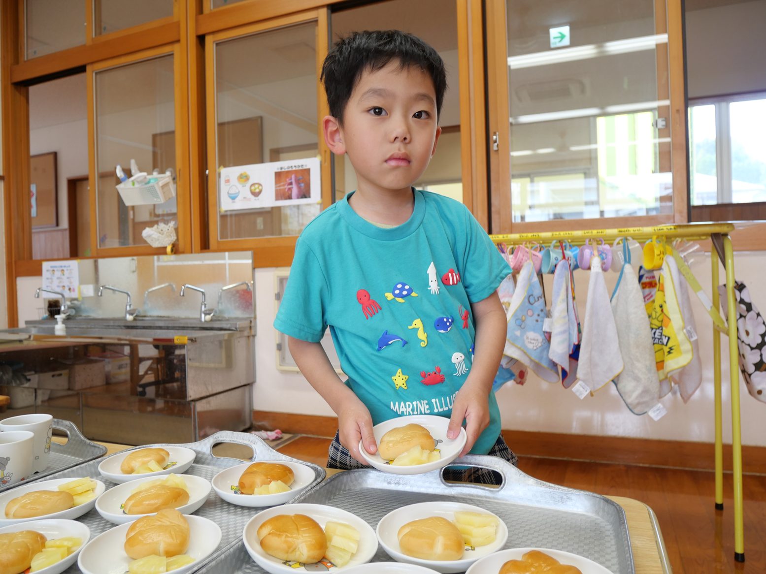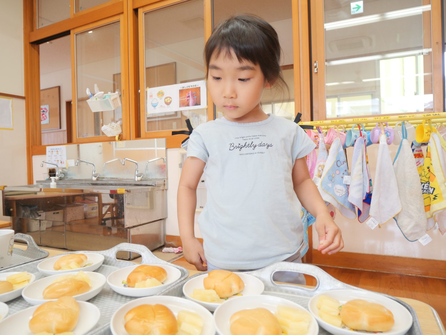準備ができると、「今日のおやつは何?」「いい匂いがするよ!」と興味津々におやつを見に行く姿が見られました。