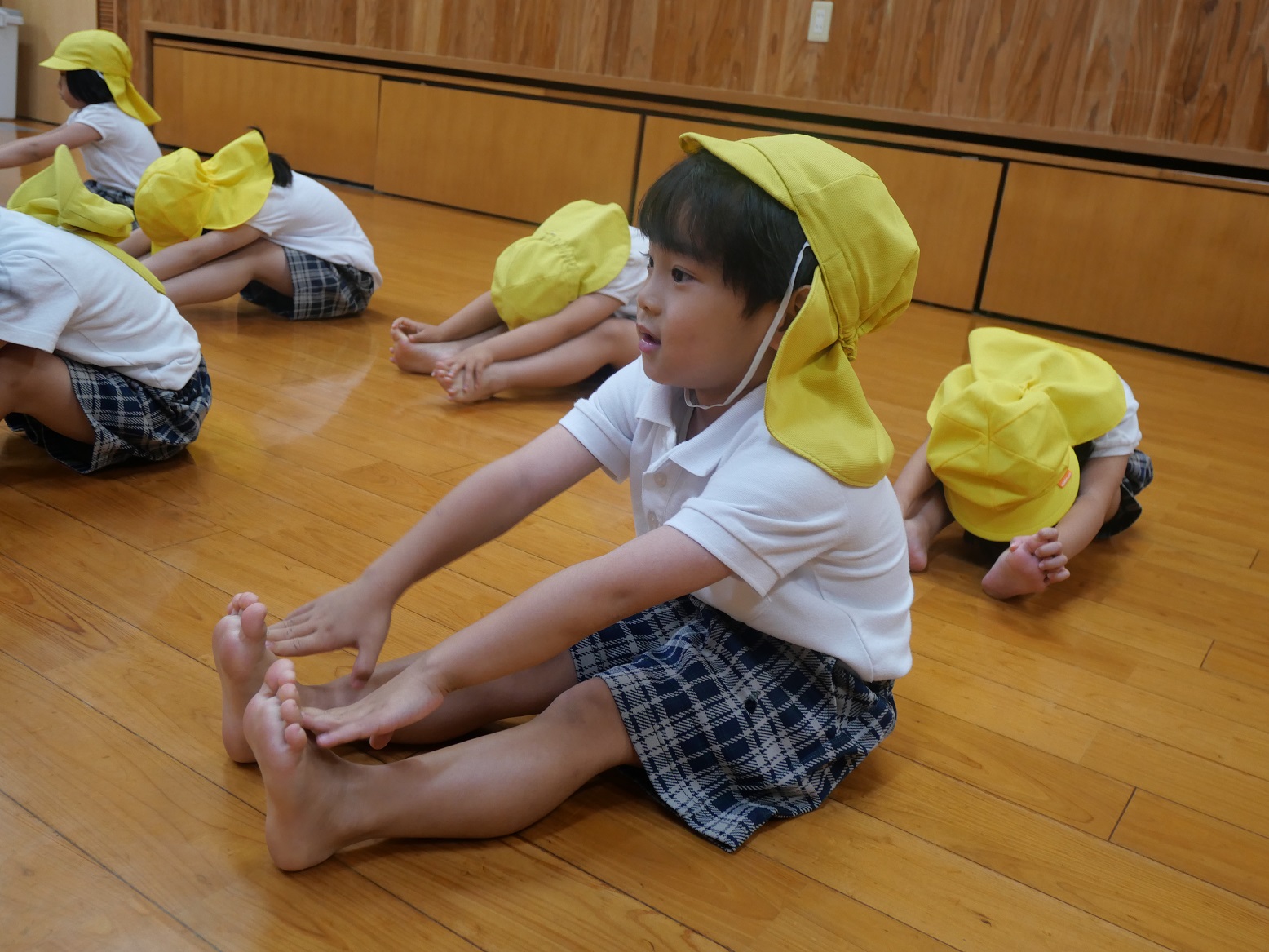 「お腹を見るんだよね。」「頭をつけたらくるりん!」と、やり方を確認しながら行っていきます。