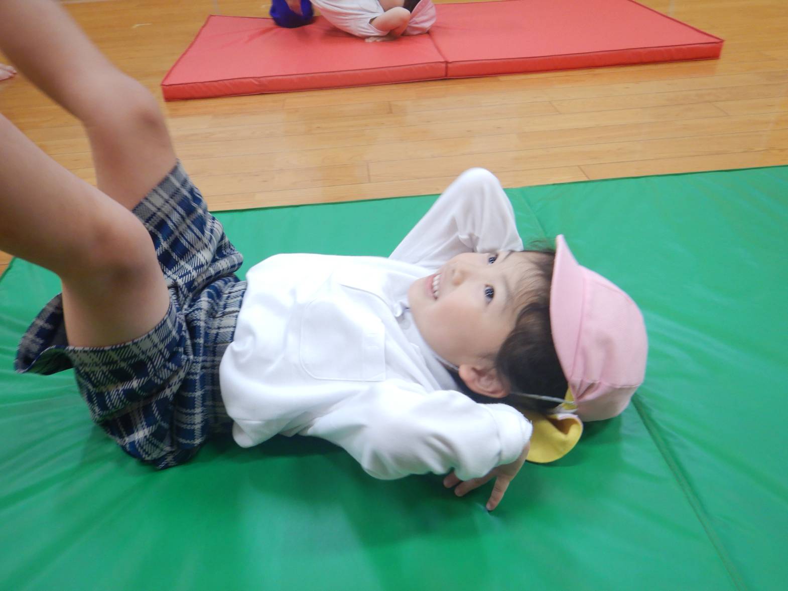 「難しいね。」「あと少しでできそう!」と少しずつ後転ができつつあるきりん組さんでした。