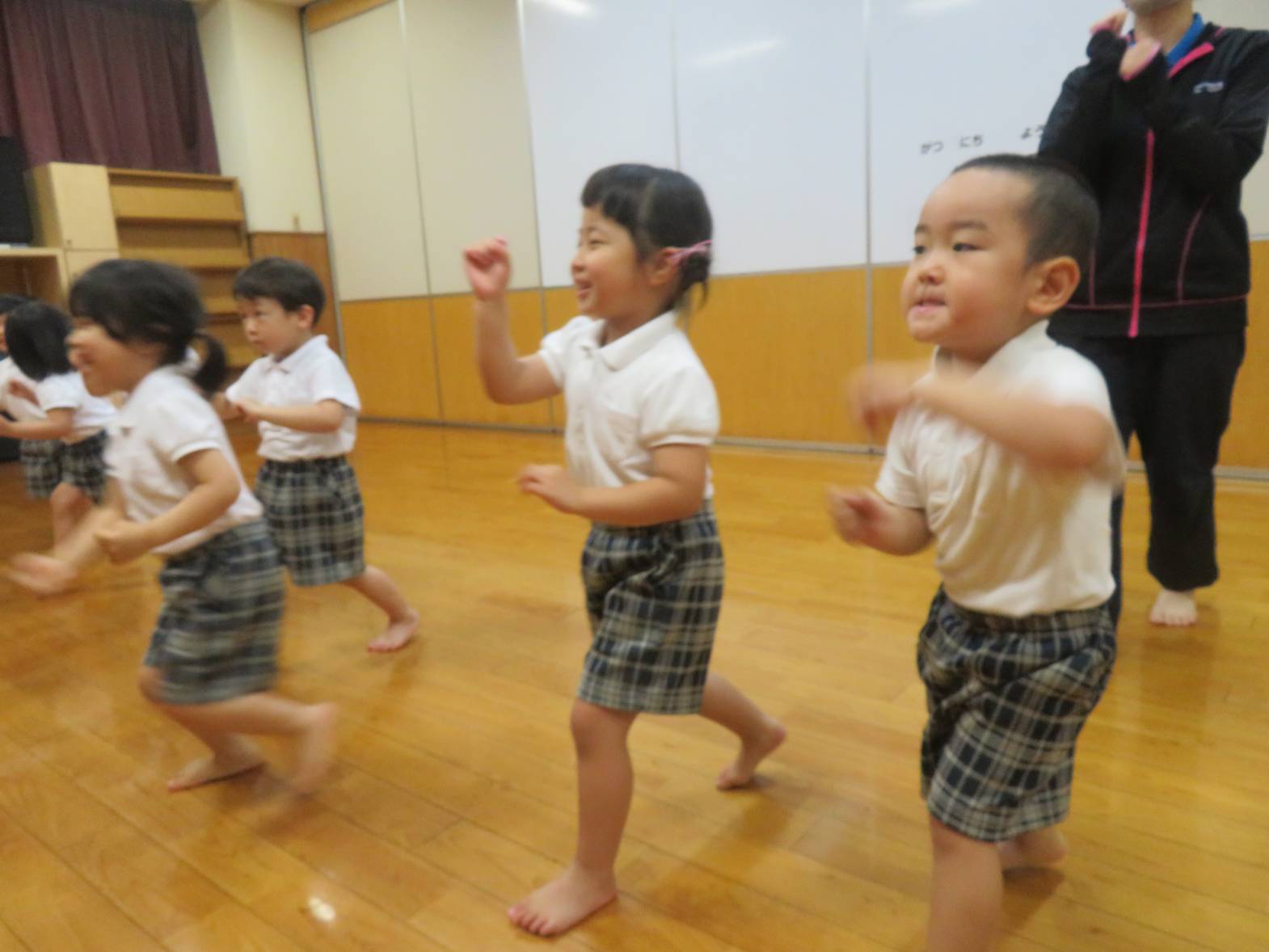 明日は、待ちに待った親子レクリエーションの日です。 今日のサークルタイムでは、「明日お父さん、お母さん来る日!」「もうあと1回寝たらだよね!」と親子レクリエーションの日を前に大興奮の子どもたち。 また、整列や体操、かけっこなどの活動へも気合十分! 「かけっこ頑張る!」「明日楽しみだな~」と目をキラキラさせる子どもたち。 明日の親子レクリエーションでは、これまで頑張ってきた子どもたちの姿を是非ご覧ください!また、たくさんの応援よろしくお願いいたします。