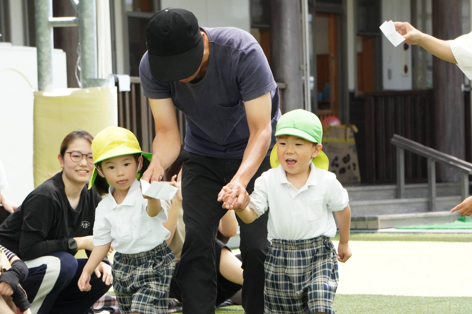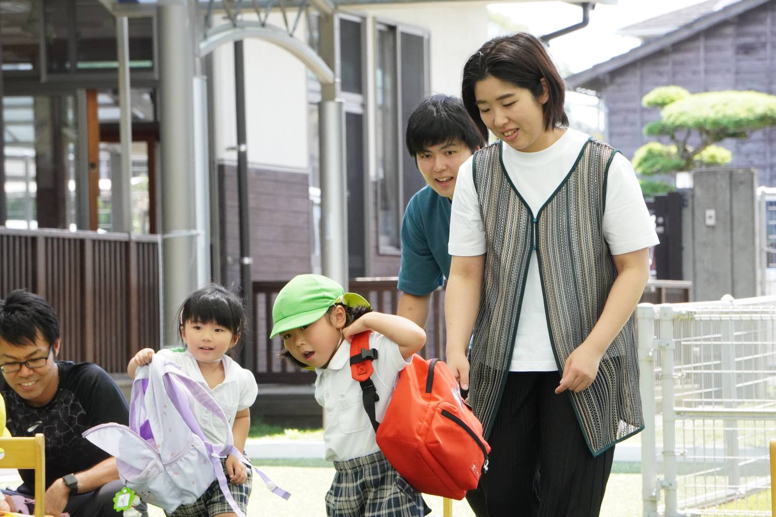 お仕度競争では、毎朝しているお仕度の様子をお父さん、お母さんたちと一緒にすることができて嬉しそうにする様子も見られました♪