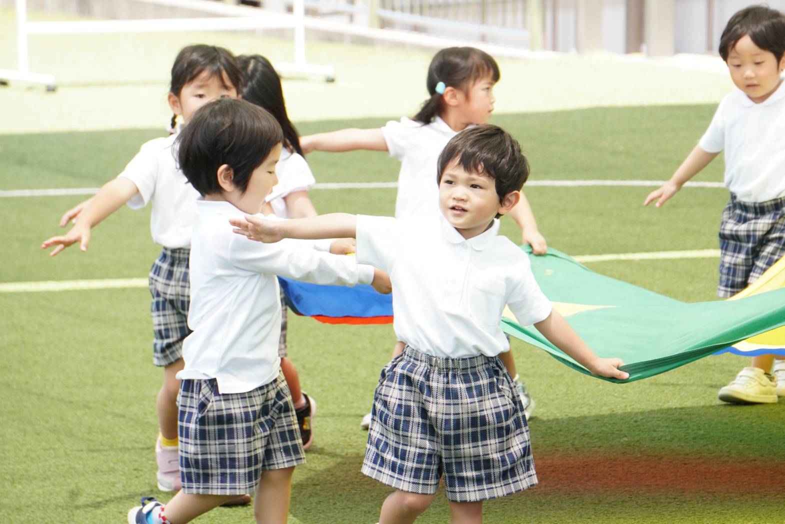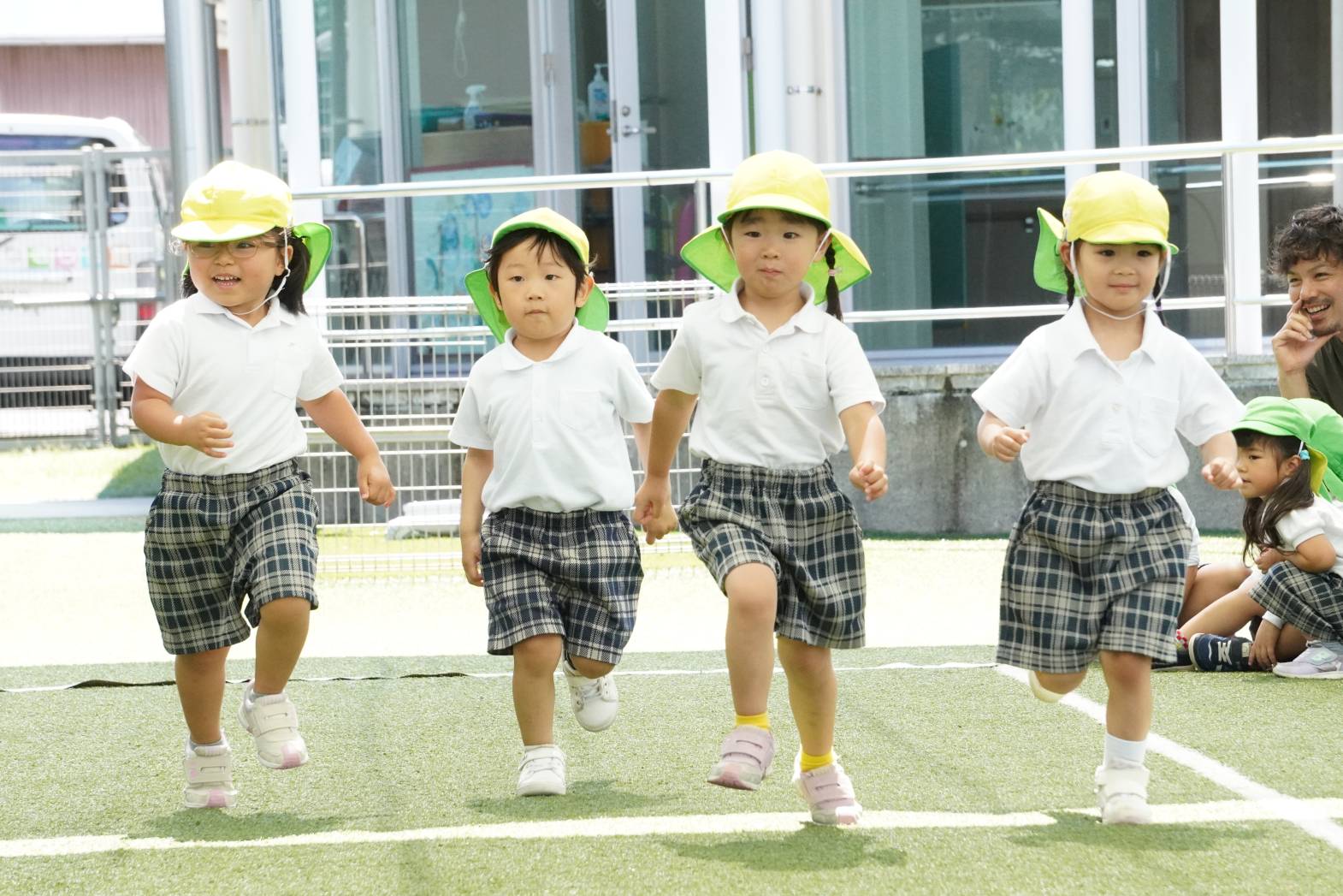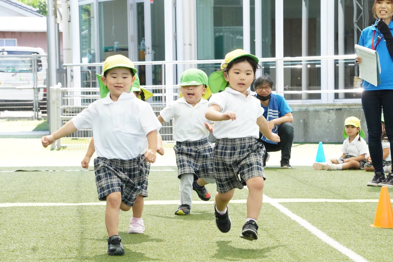 かけっこでは、今までの練習の成果を発揮する子どもたち。