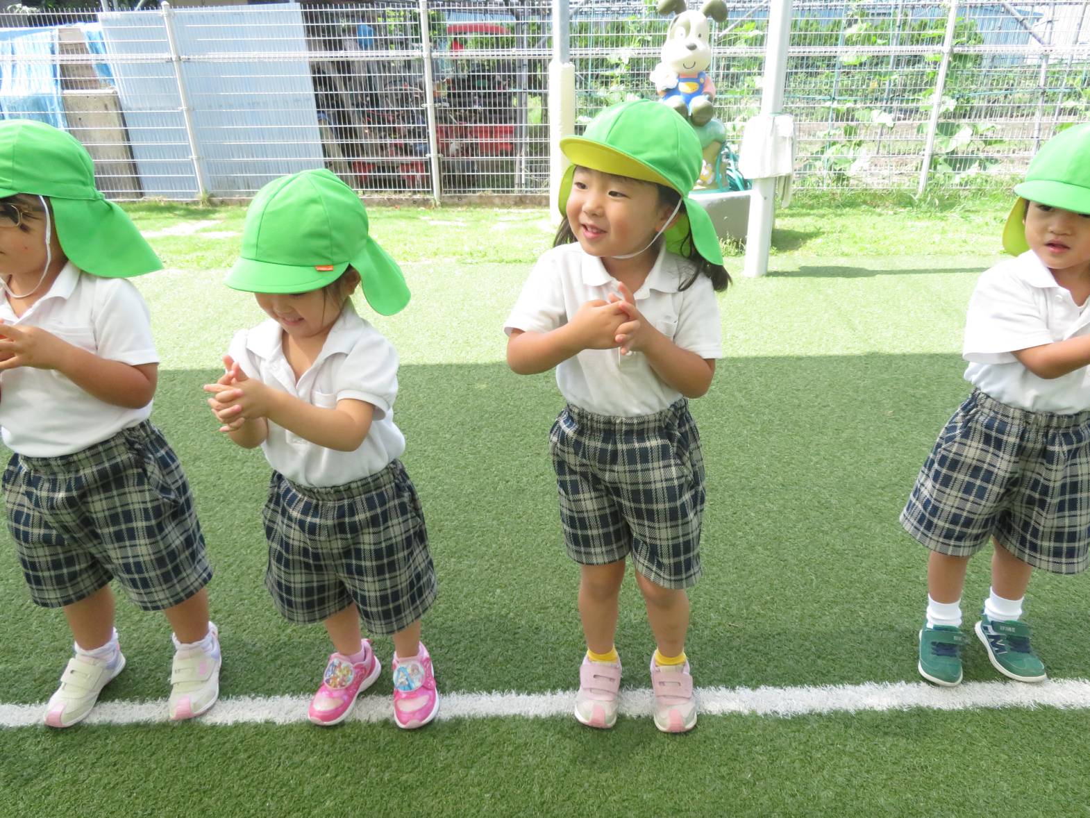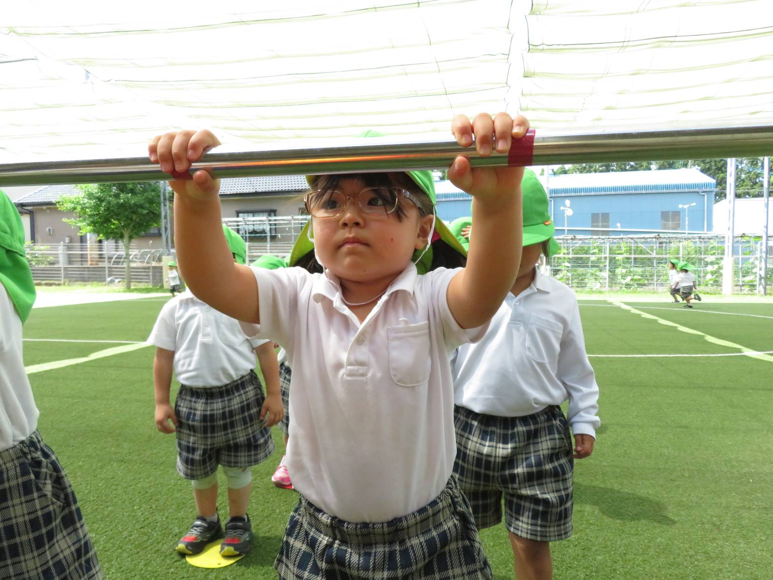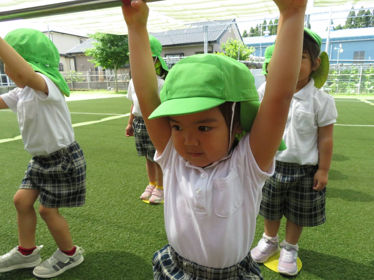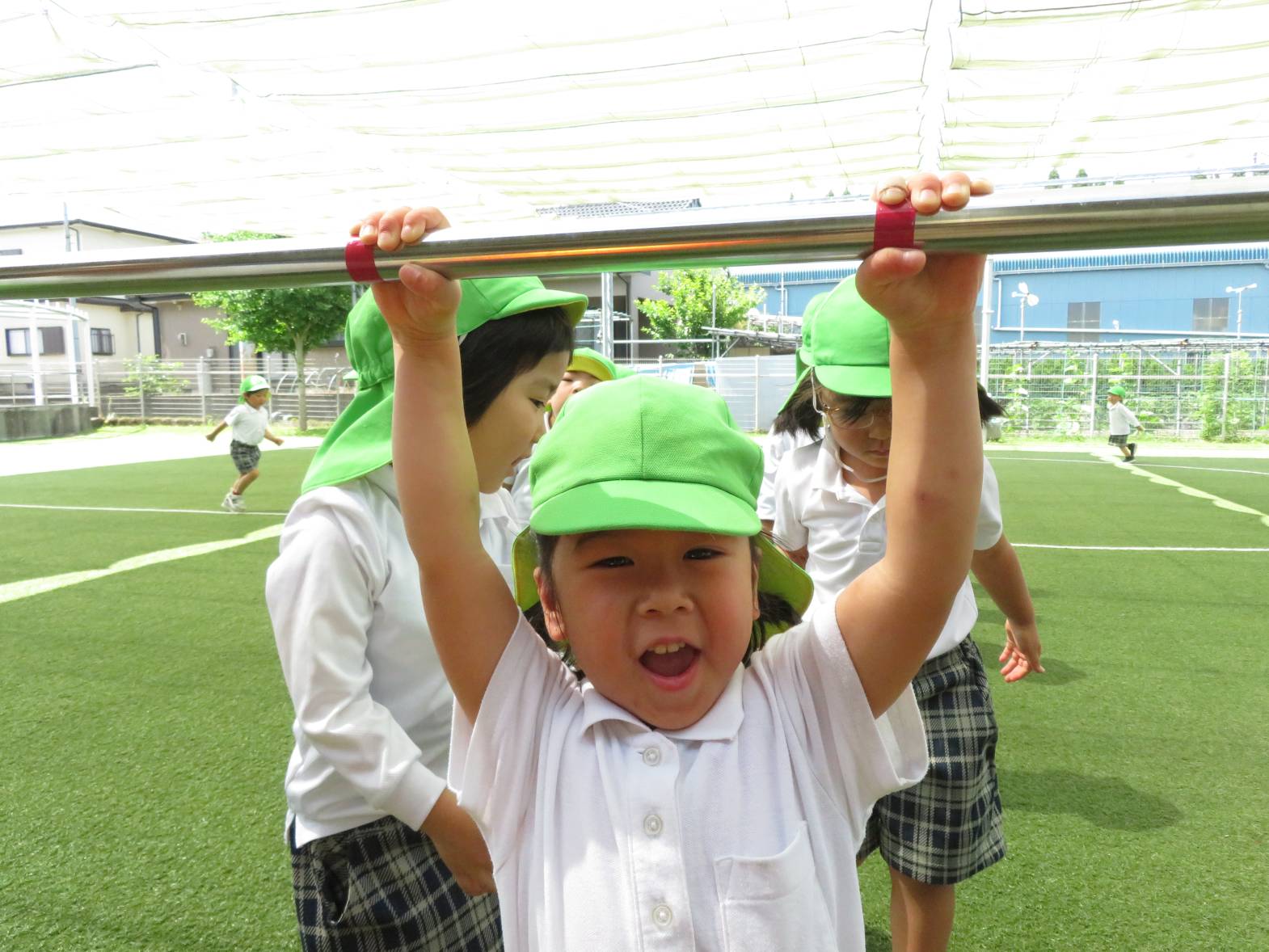 運動遊びでは、鉄棒に挑戦しました。 「パクパクギュッ!」と、鉄棒の握り方を教えてもらうと、「こう?」、「合ってる?」等と、一つひとつ確認しながら、真剣な表情で取り組む姿が見られました。 上手にぶら下がったり、こあらやお猿さんのポーズができたりすると、「できたー!」と、とても嬉しそうな子どもたちでした♪ 今後もいろいろなことに挑戦していきたいと思います!
