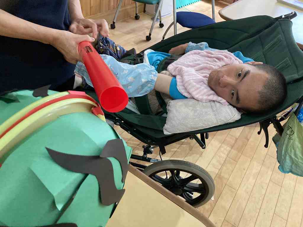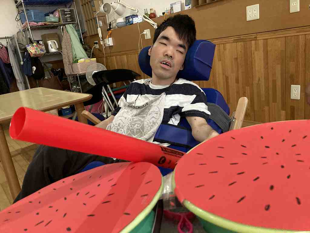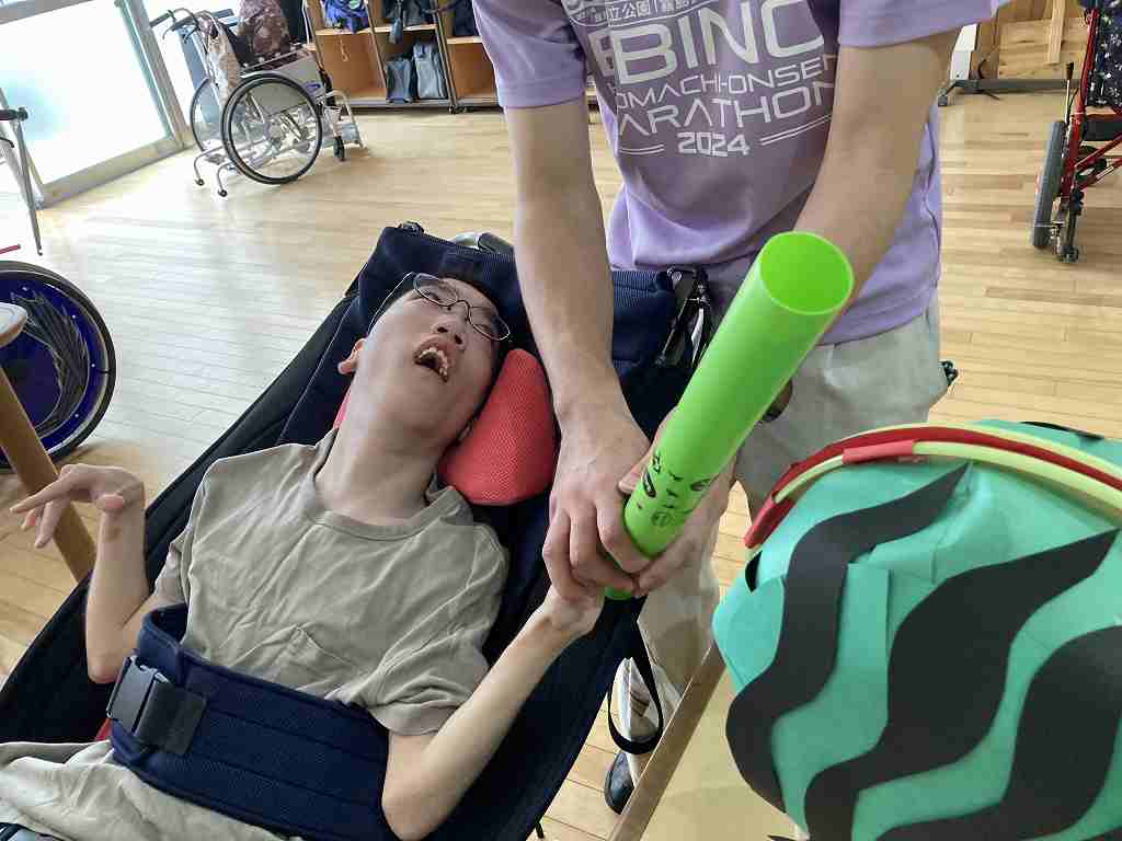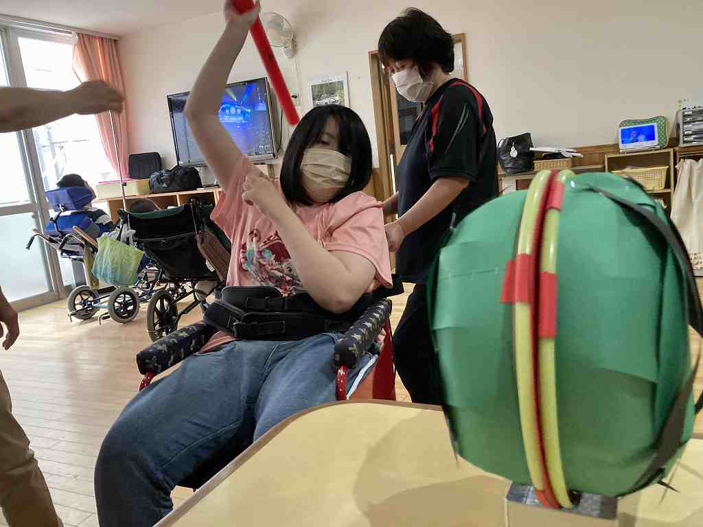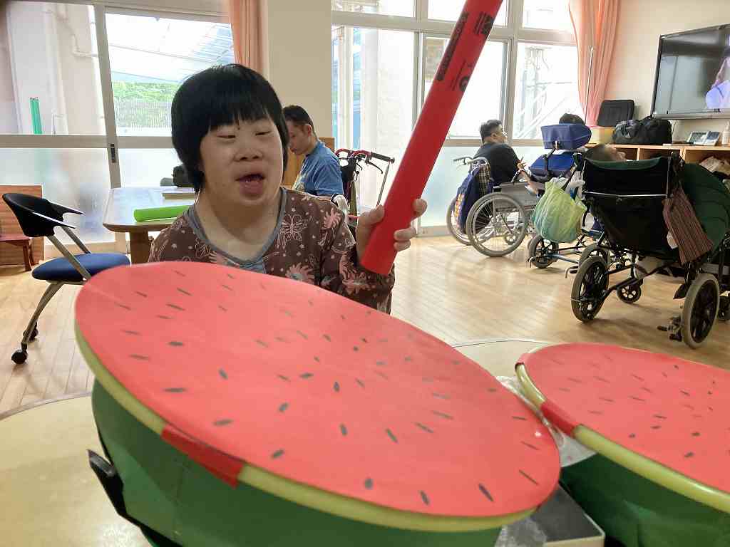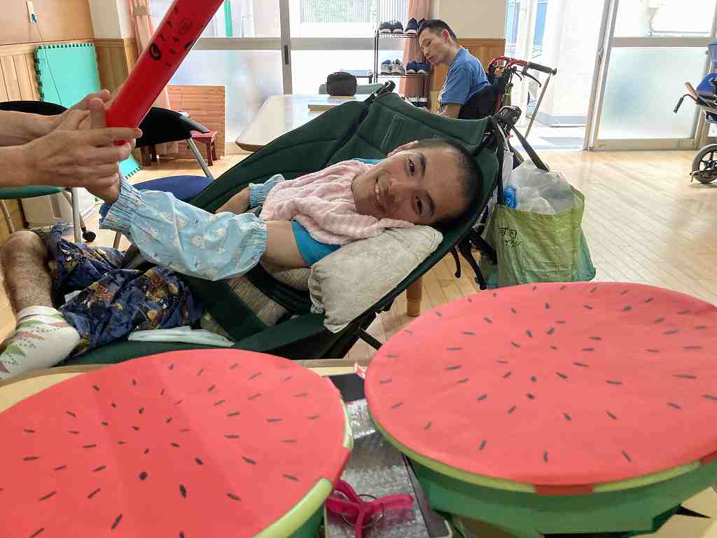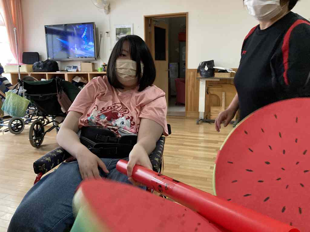 今回のレクリエーションは暑い日にちなんで、ちょっと早めのすいか割りをレクリエーション活動で行いました。 真剣な表情で狙いを定める方もいれば・・・ 豪快に振り下ろして一発で! 上手に割れるかな? 皆さん、上手に割ることができました! 今回はちょっぴり早いすいか割りで、夏を一足先に感じる事ができました。 次回の活動も楽しみにしておいてくださいね!