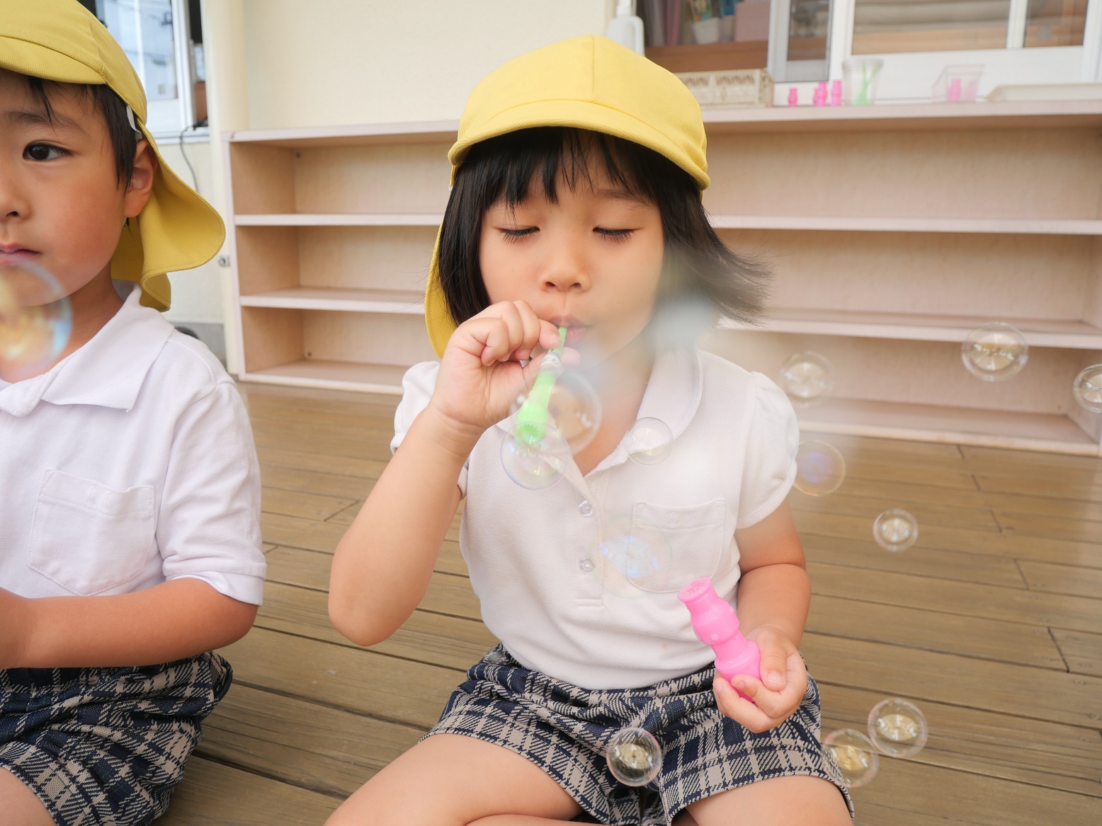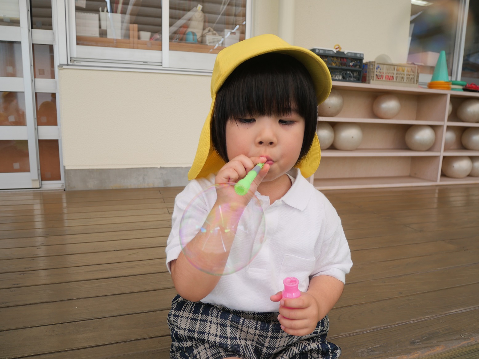 「シャボン玉、楽しかったね。」「またやりたいな!」と、次のシャボン玉遊びを心待ちにしていたうさぎ組さんです。