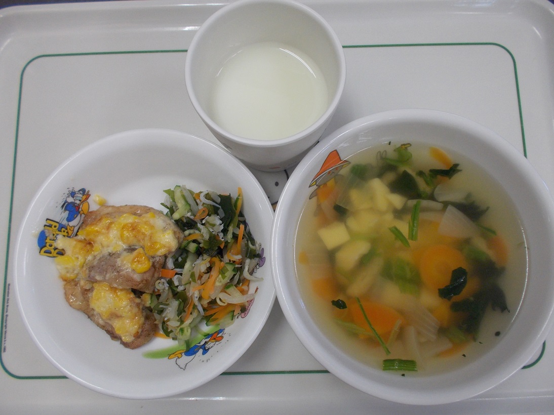 6月10日(月)から6月15日(土)までの給食献立写真・離乳食提供量と写真の一例です。