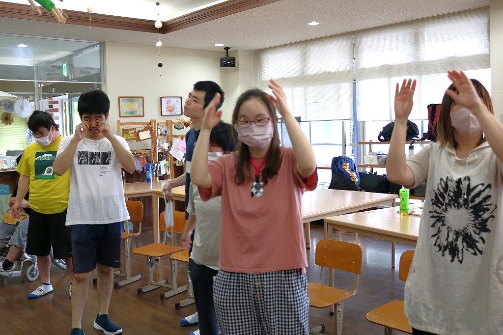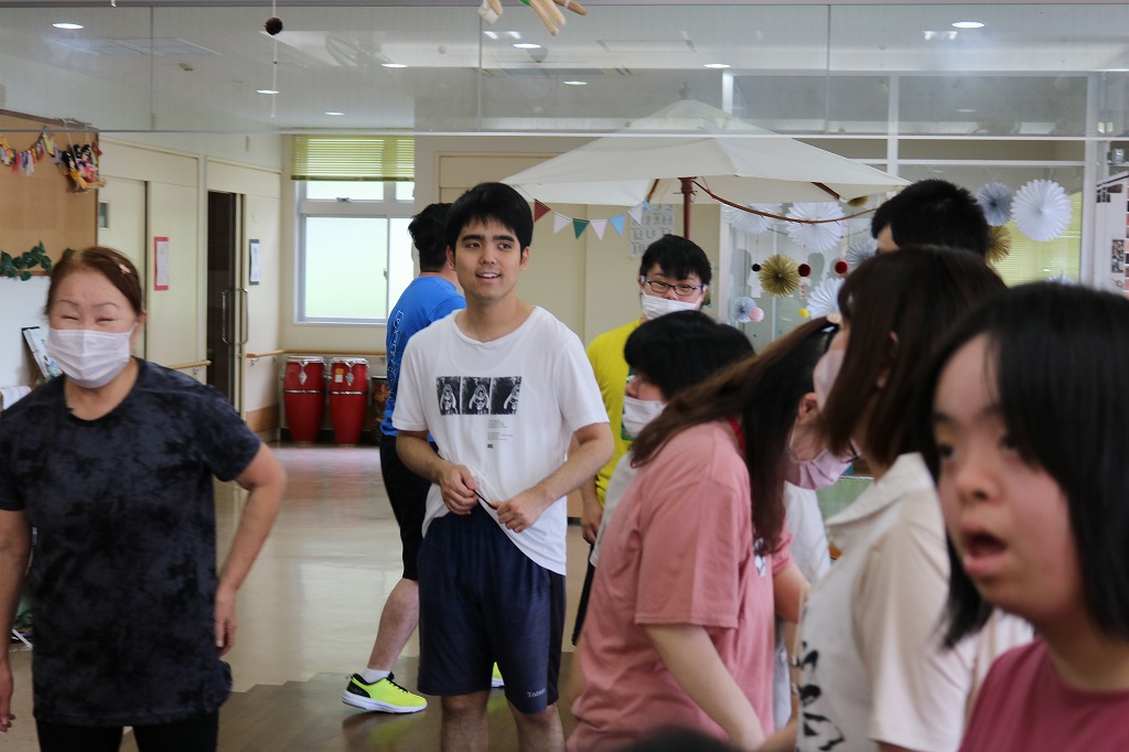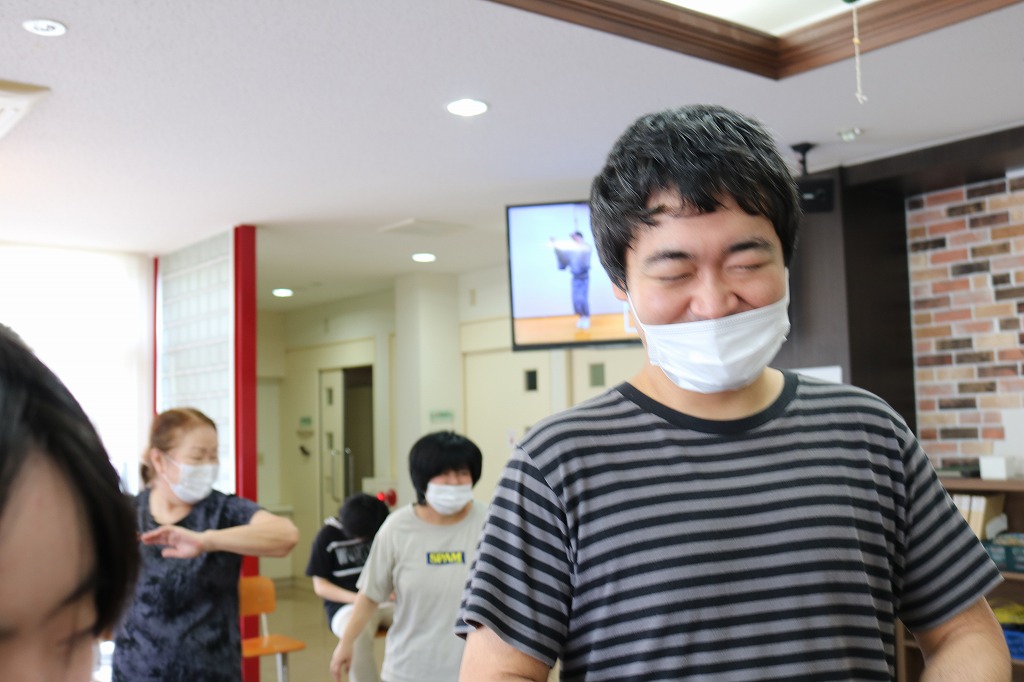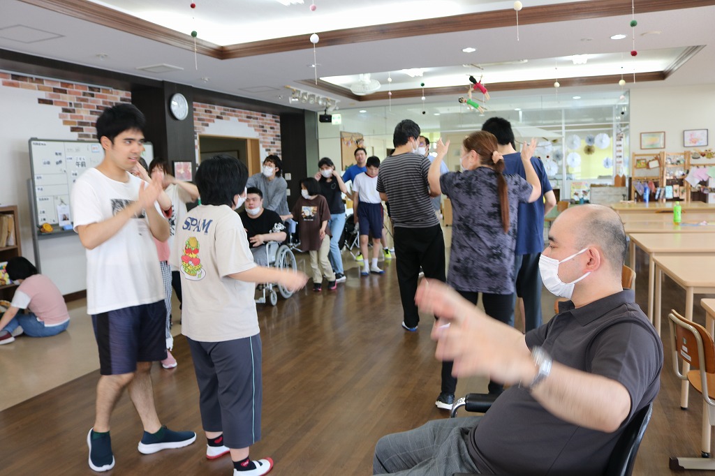 今年もきららの「夏祭り」に向けて おはら節の練習を行いました。 一年も経つと振り付けが曖昧になっており、 支援員と一緒に振り付けを確認しながら、輪になって踊りました。 何回か踊ると、「こんな感じだったな。」と思い出してきたようです。 7月27日(土)の本番も是非楽しみにしていてください。