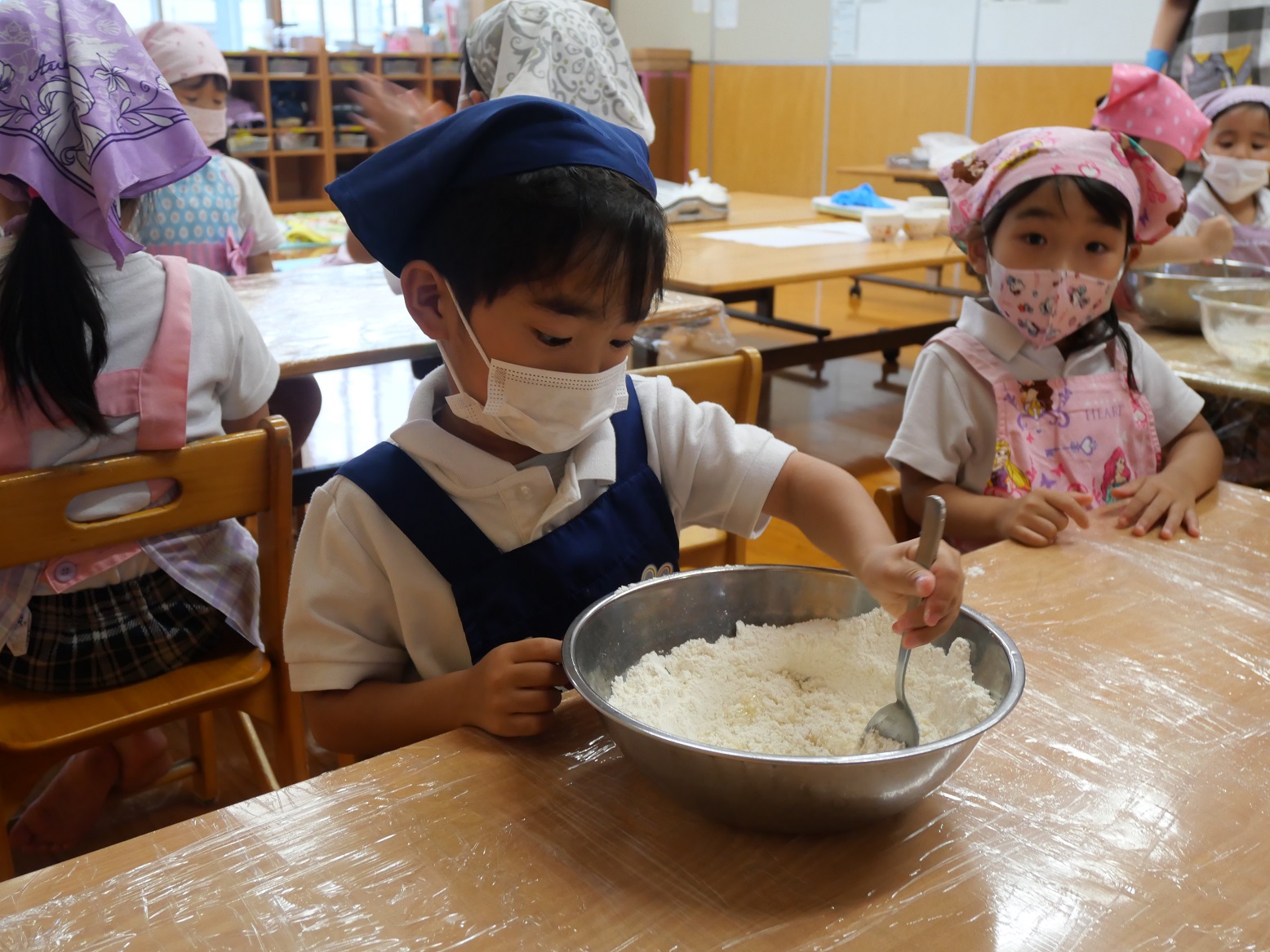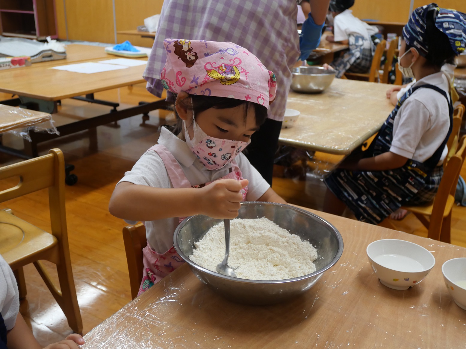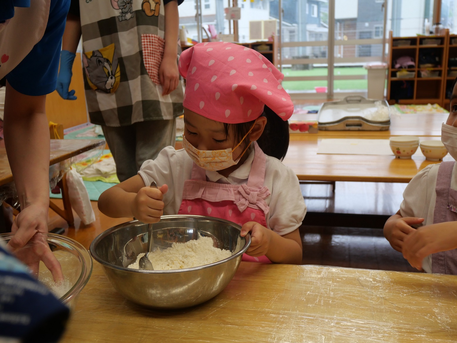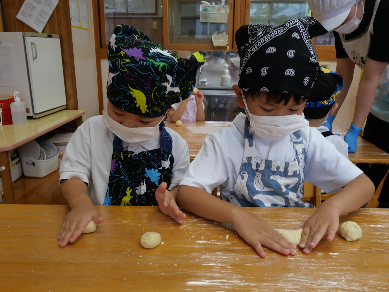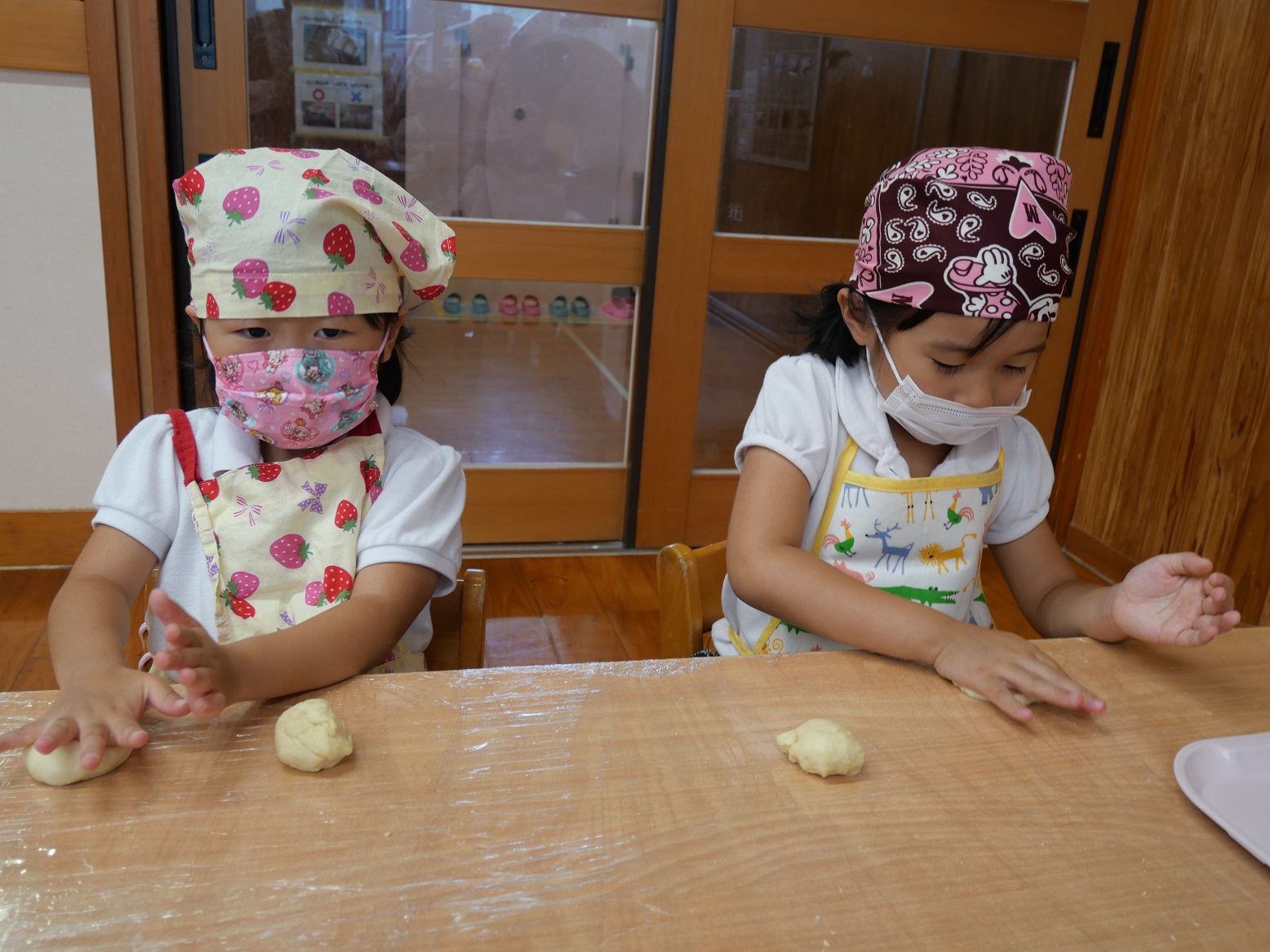 「こねるって、こうするのかな?」「どんな形にしようかな?」と、試行錯誤しながらスコーンを完成させていました。