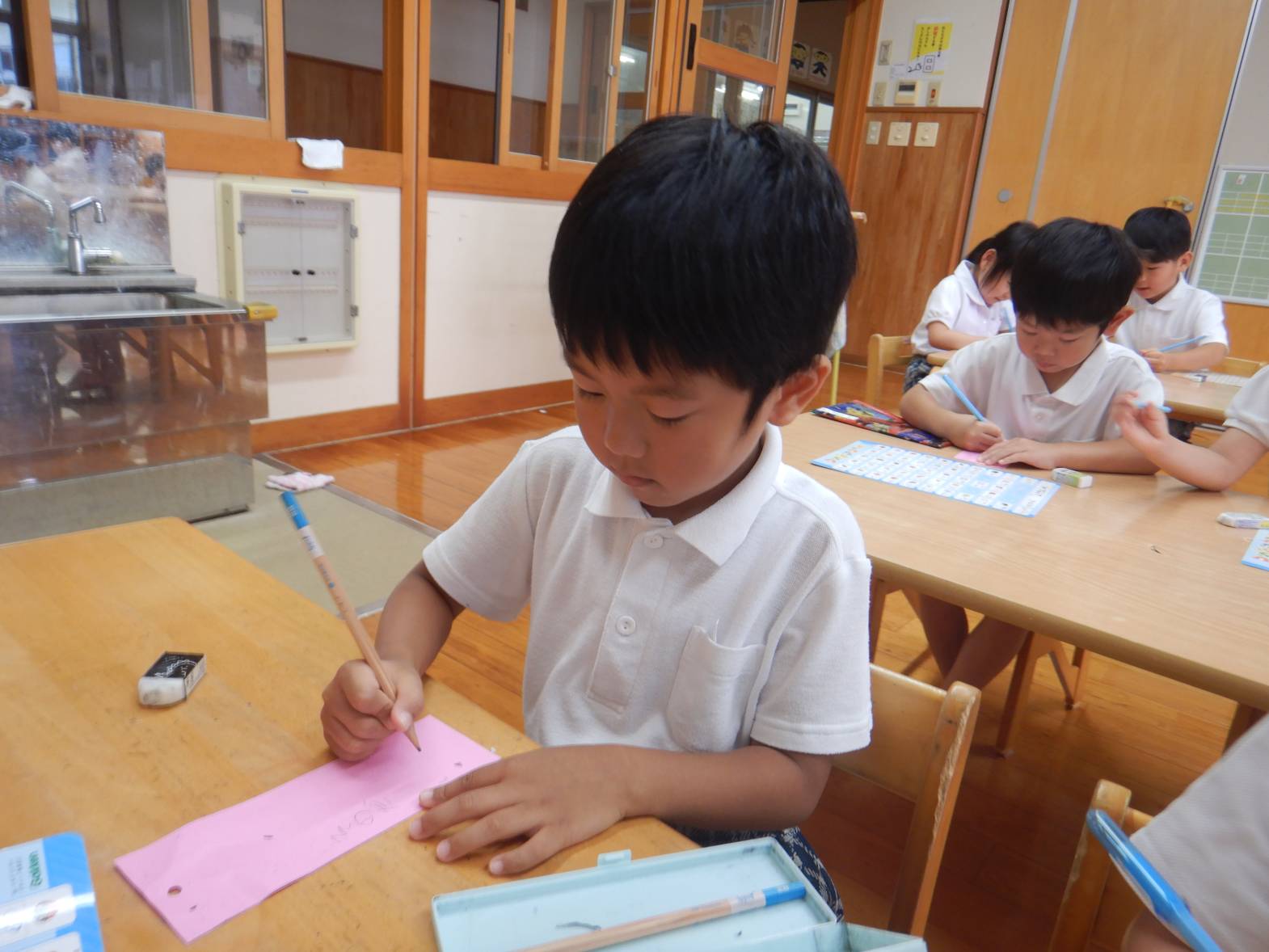 「なに書こうかな?」と願い事を考える子どもたち。