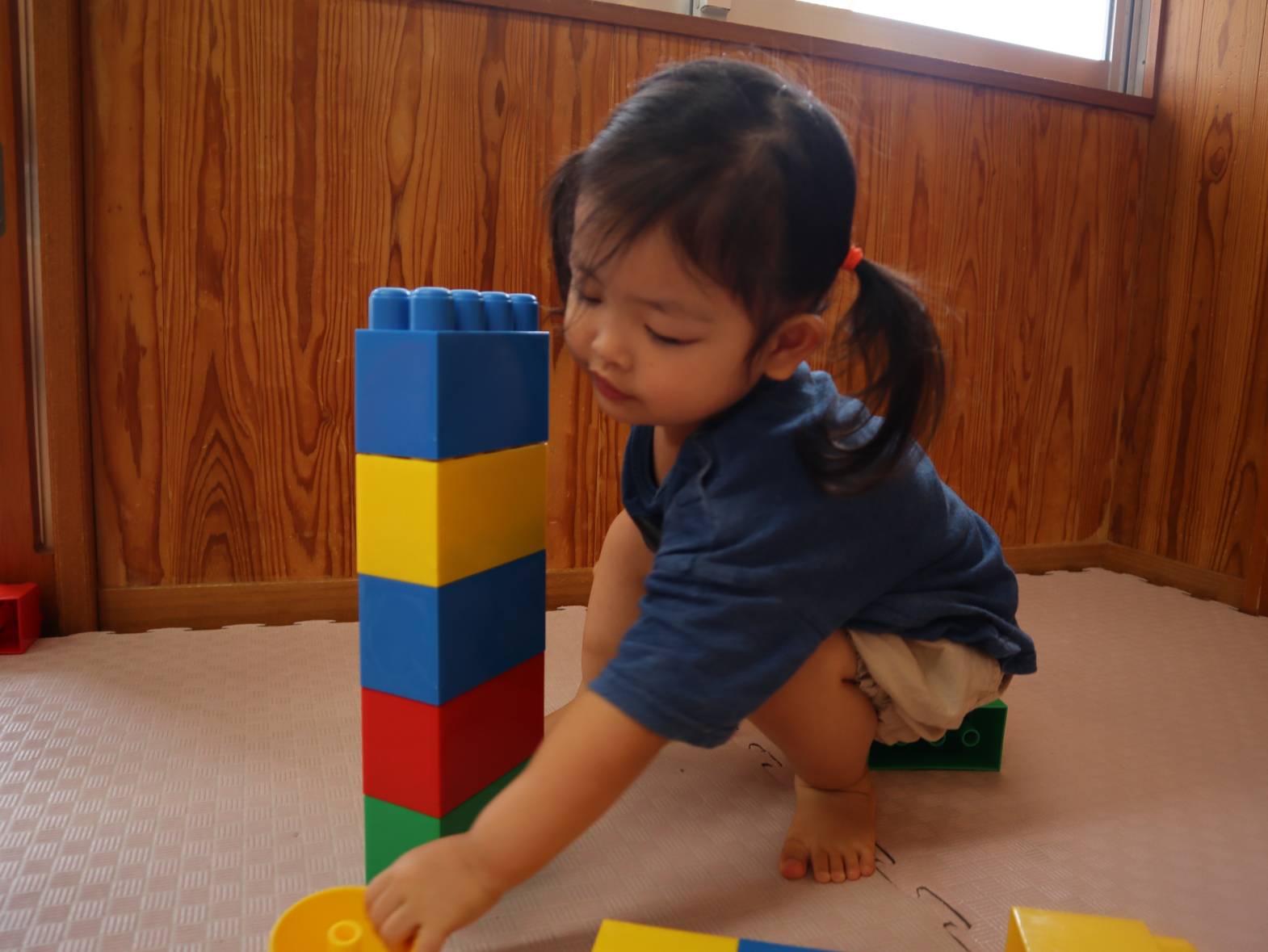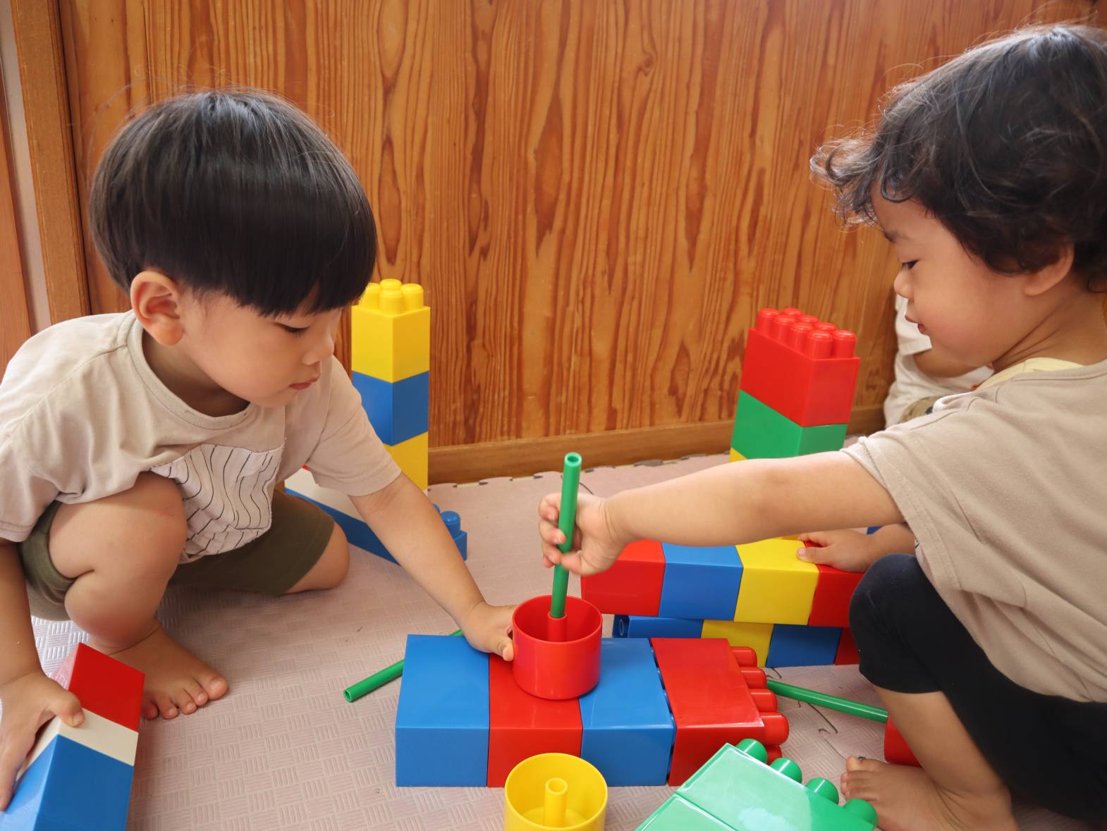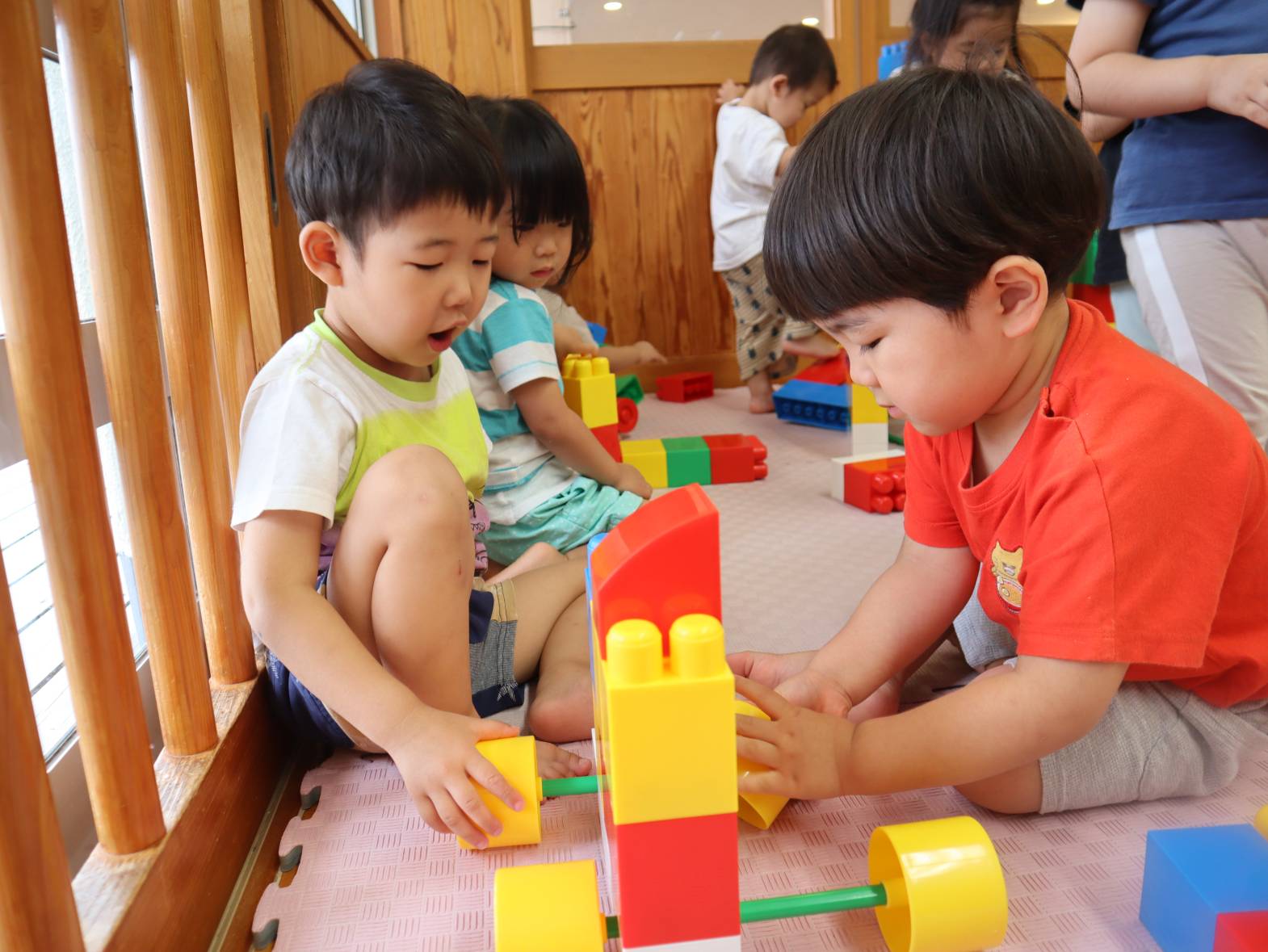 創造性の高まってきたぱんだ組の子どもたちは、最近大きなブロックに夢中です! 友だち同士で「こっち持ってて!」、「一緒に車作ろう!」と協力しながら色んな形を作っていく姿が見られます。 大きなブロックなので苦戦することも多いですが、試行錯誤しながらパーツを組み合わせていく子どもたち。 「今度は飛行機作りたいな。」、「また一緒に作ろうね。」と大満足のようです。