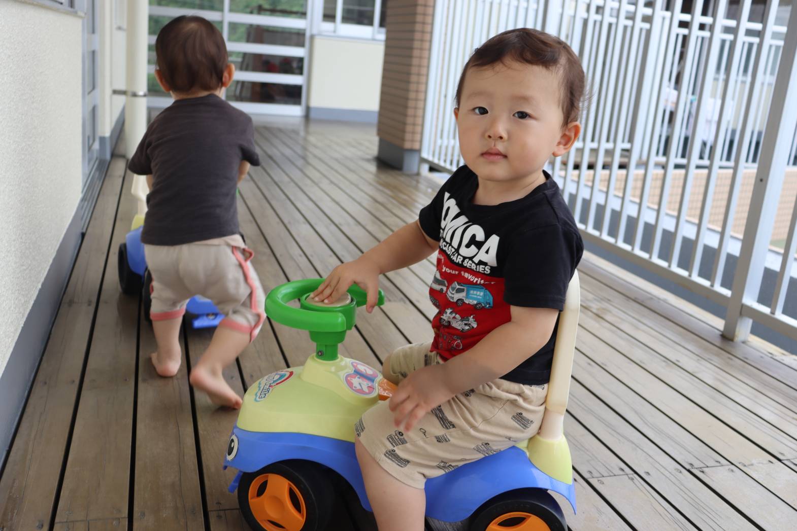 体を動かすことが大好きなこあら組さん。 思い思いに体をたくさん動かし、活動の時間を楽しんでいます。 テラスでは、乗り物に乗って、「ぶっぶー。」と運転手気分を味わったり、 室内では、大きなブロック「よいしょ!」と、持ちあげて積み上げたりしています。 少しずつ体の使い方が上達し、思うように動かすことができるようになっています。 今後も様々な遊びを通して、体を動かす楽しさを味わうことができるようにしていきます!
