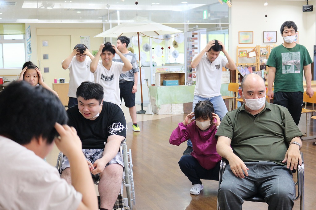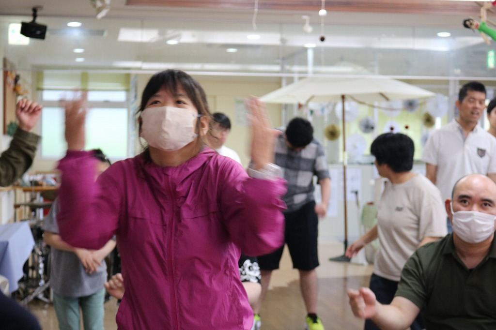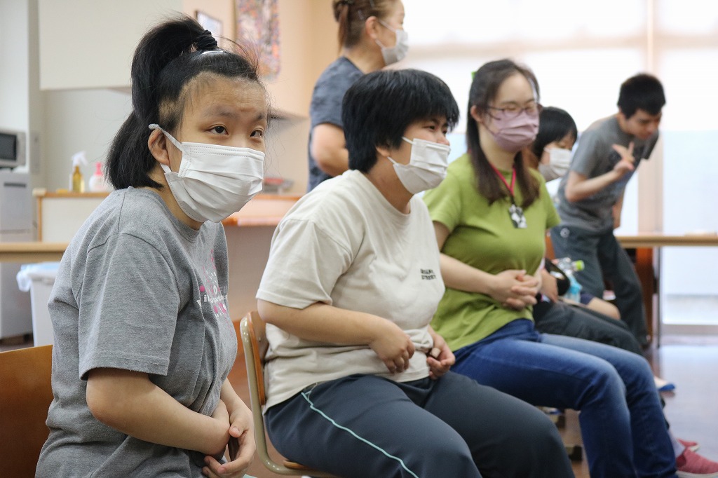 本日は、リハレクを行いました。 椅子に座って全身のストレッチや ダンスに取り組んでくれていました。 「ダンスホール」「Bring bang bang born」などの曲に合わせて 笑顔で運動を楽しんでくれていました。