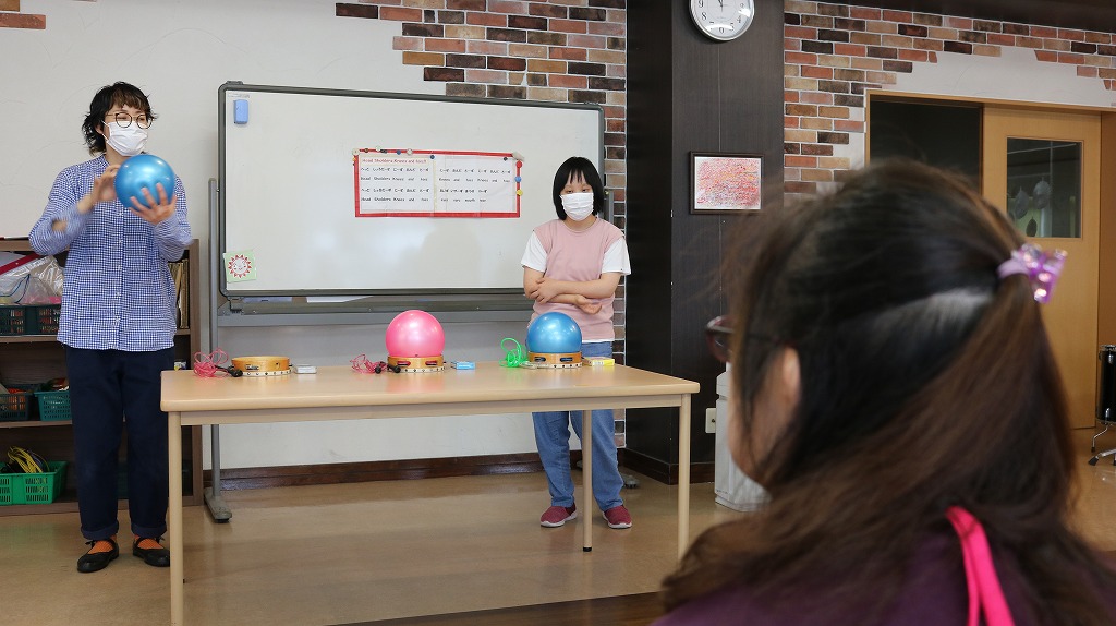 毎週月曜日に実施している「英語で遊ぼう」では、 英語歌詞の歌を皆さんで歌ったり、 振り付けやレクリエーションを通して体を動かしながら英単語を学習しています。 「英語で遊ぼう」以外の時間にも、活動中の歌を口ずさむ方が多い、1週間の始まりには欠かせない大人気な活動です。