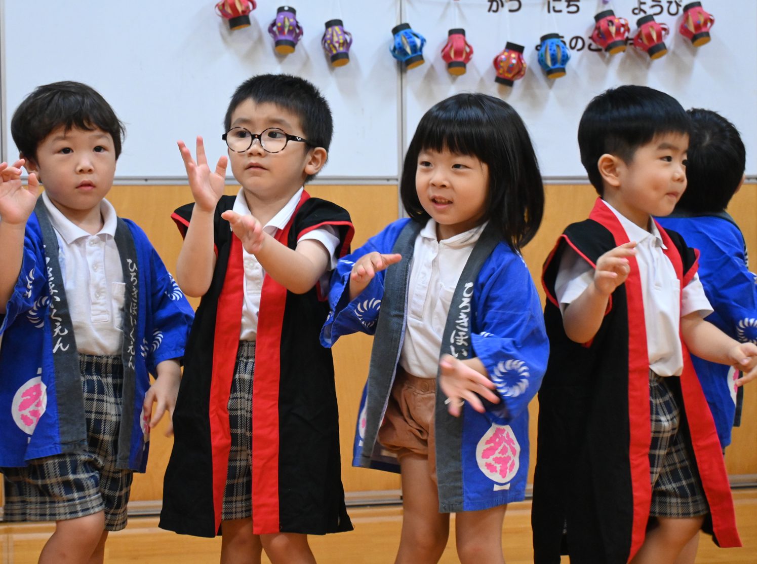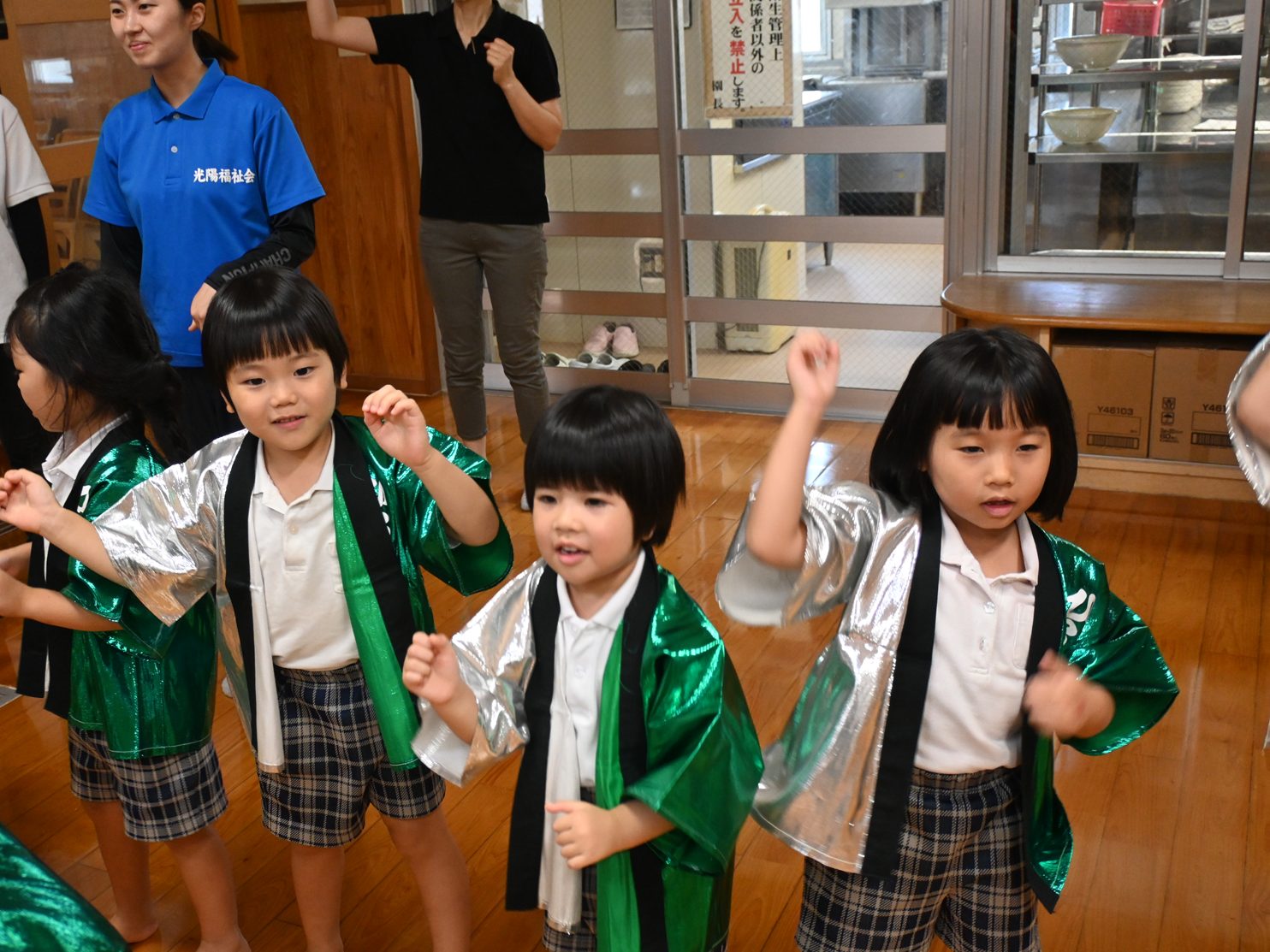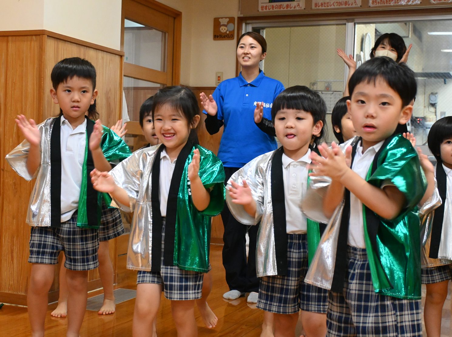 他のクラスの友だちと向き合うと、笑顔を浮かべながら元気に踊る子どもたちの姿が見られました。
