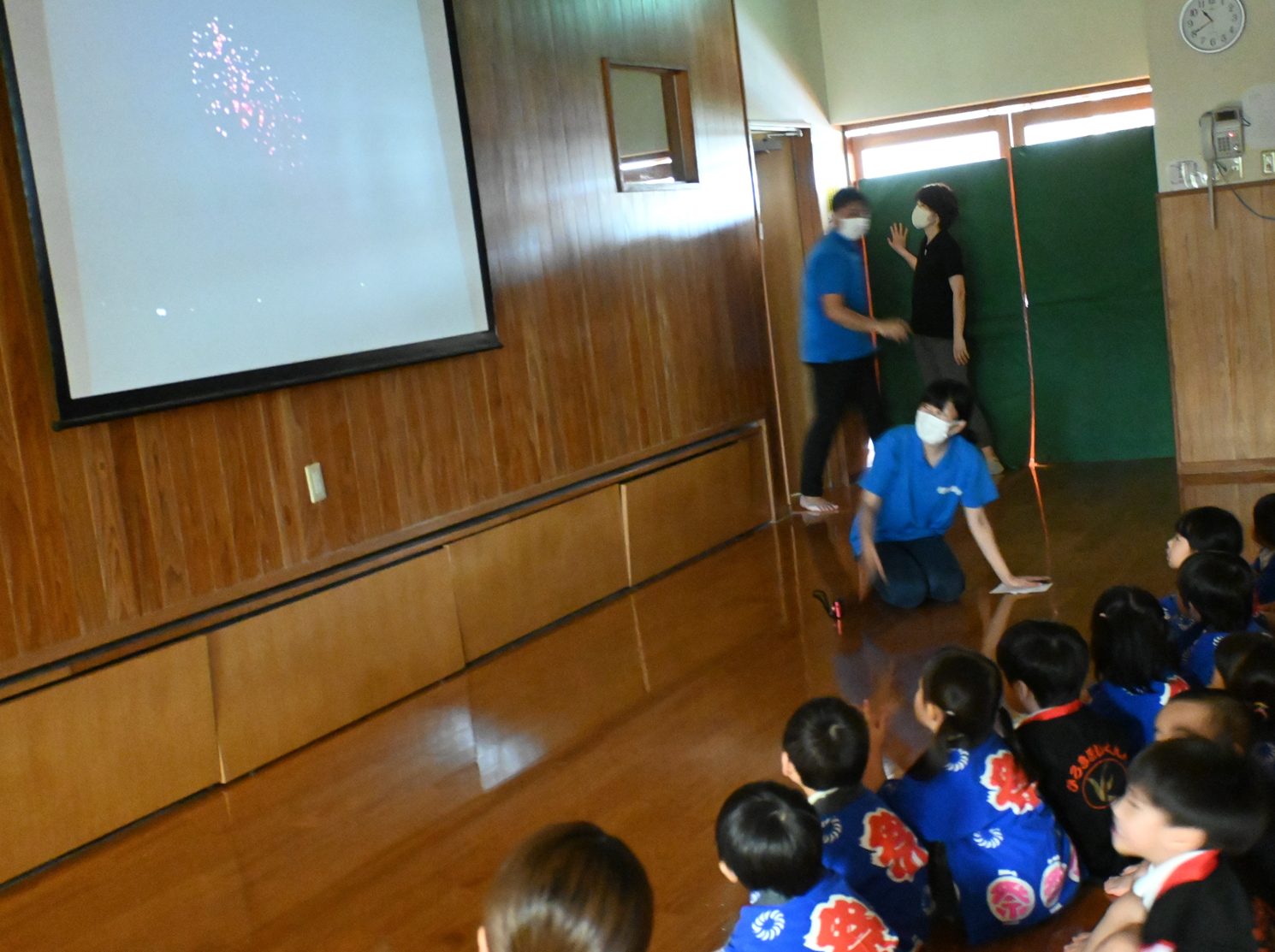 音楽と共に花火の映像が流れると「わぁー!」、「すごーい!」と大きな歓声が上がりました。