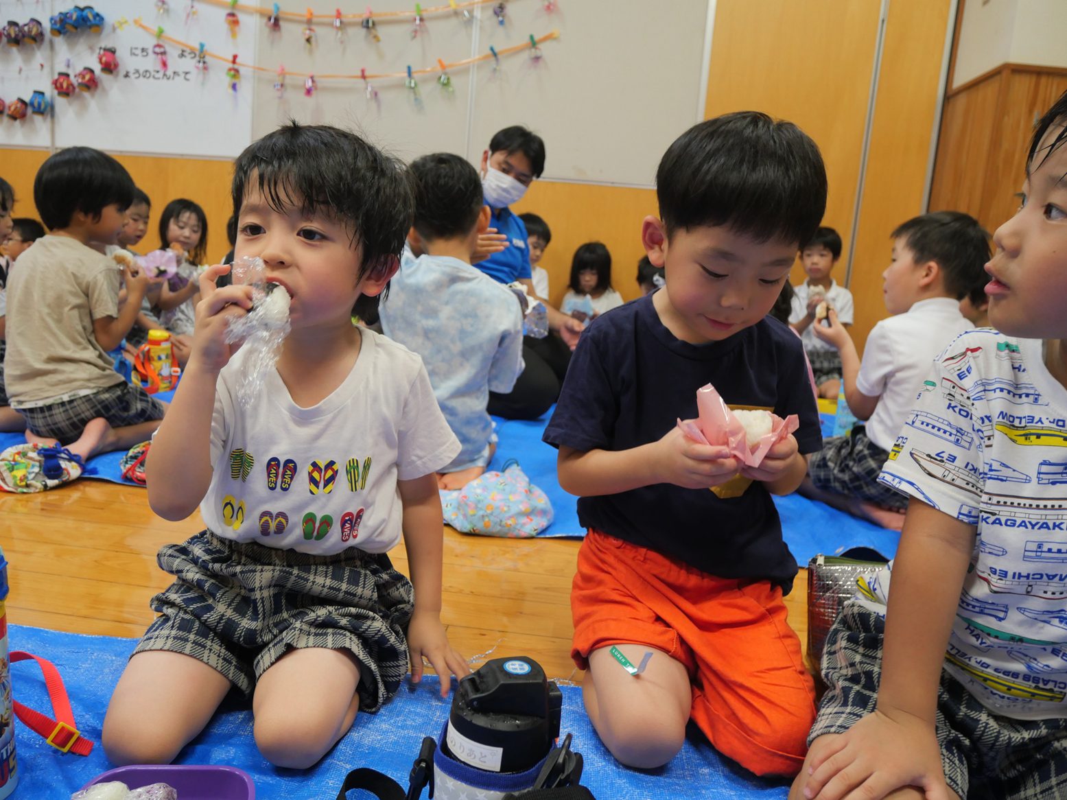 「ママと一緒に作ったの!」「僕がどれにするか選んだよ。」と友だちとの会話を楽しみながら、笑顔で食べ進めていました。