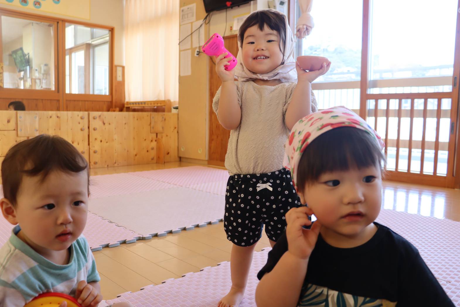 バンダナを付けると、「かわいいでしょ?」と確認したり、「見てみて!」と、友だちと見せ合いっこしたりしています。
