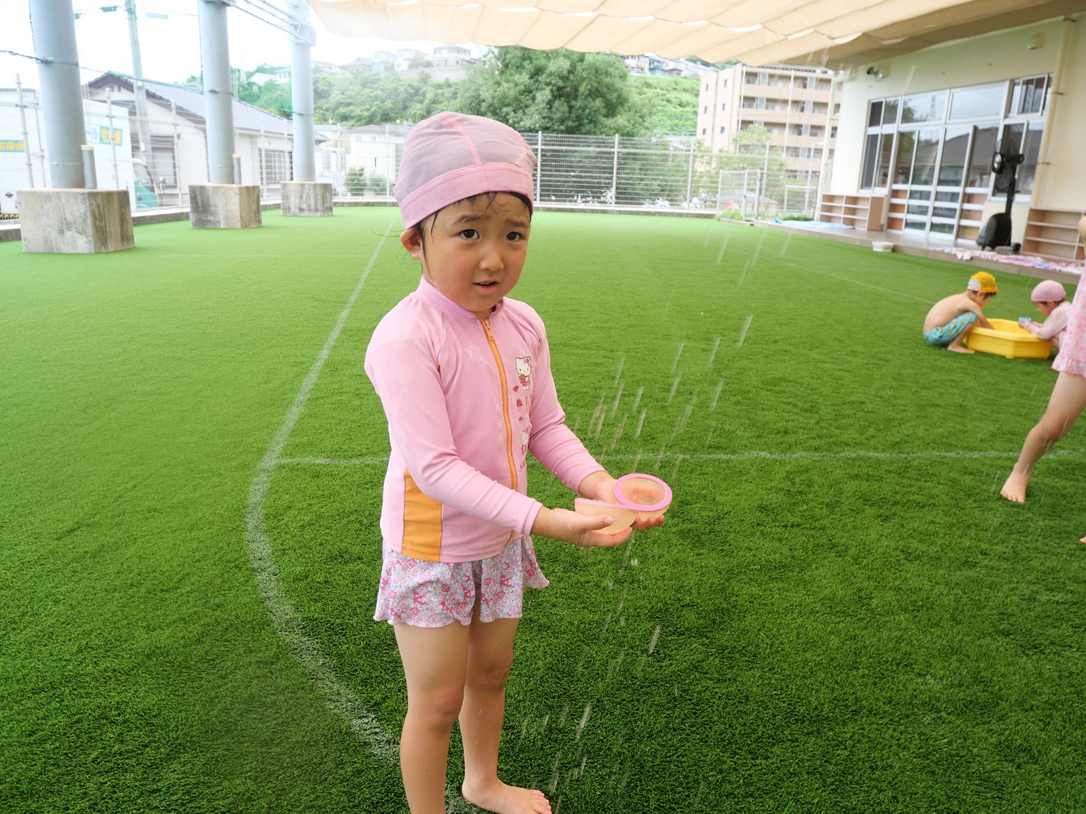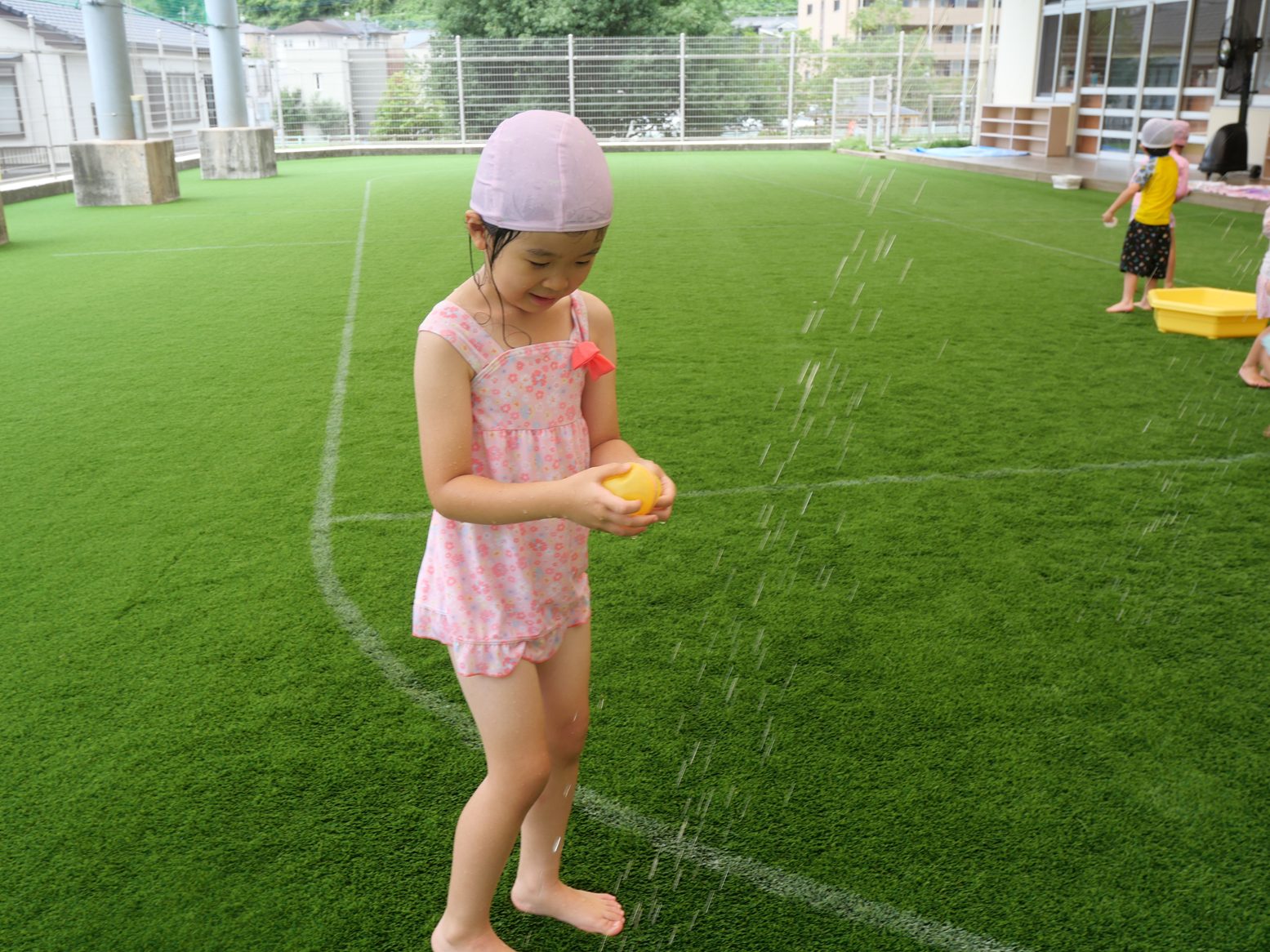 水に触れると「きゃあー!」「気持ちいい。」と、水の感触を楽しむ姿が見られます。