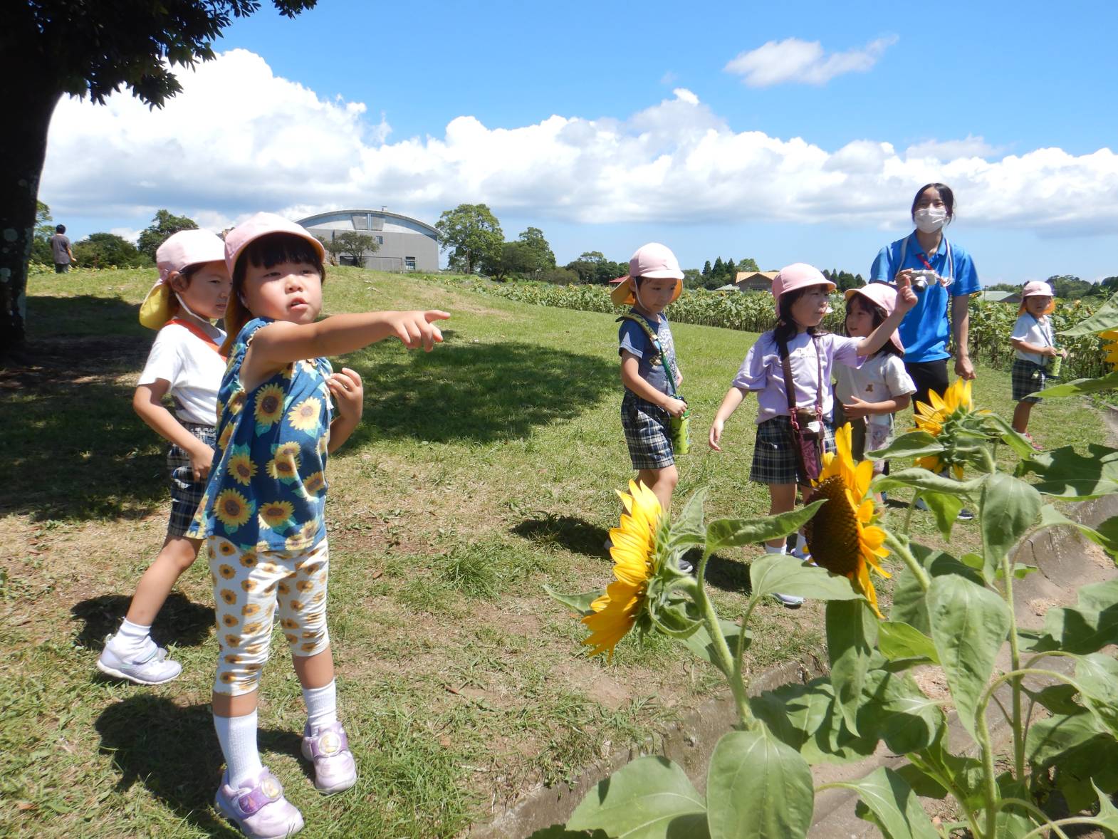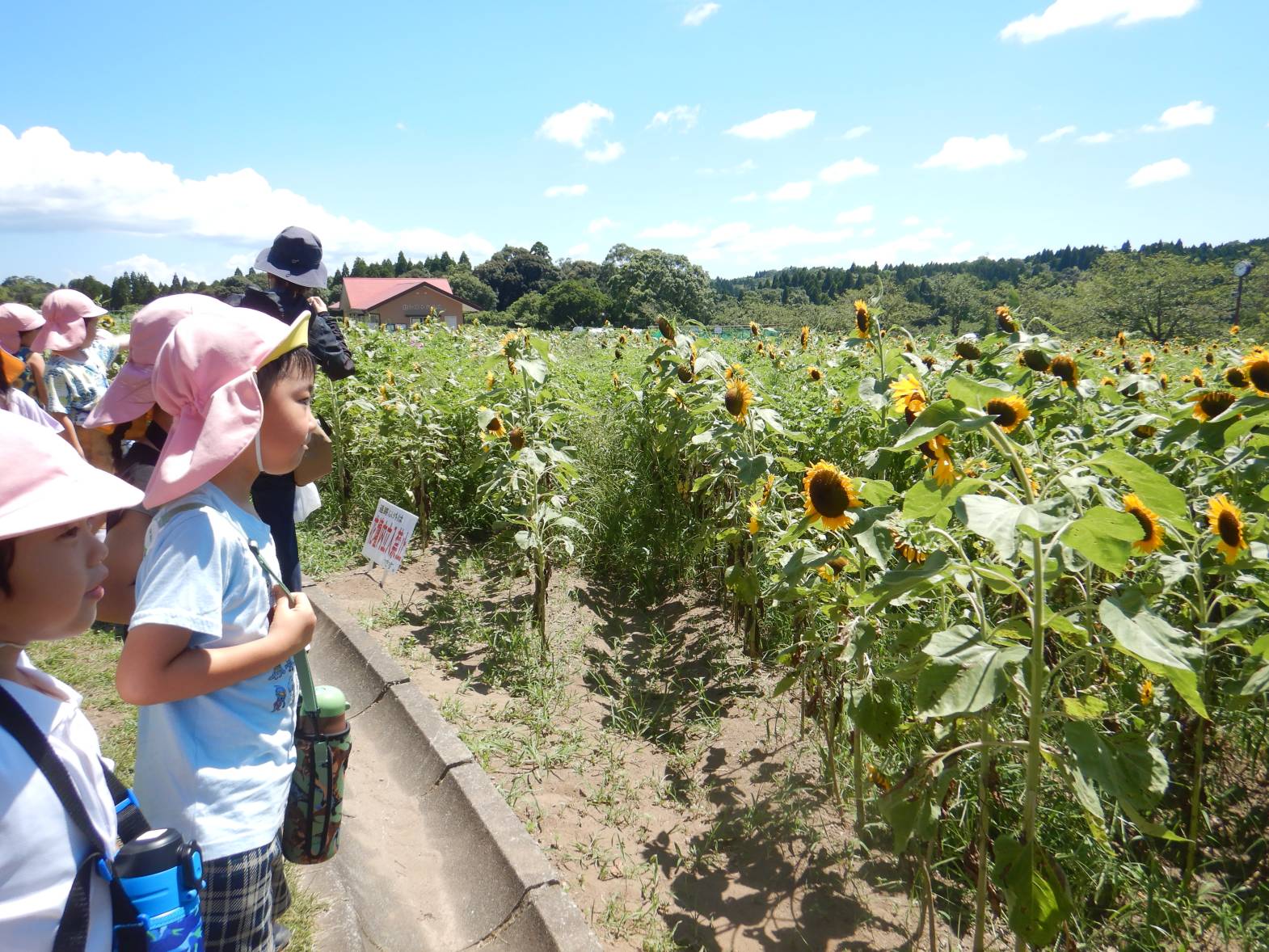 都市農業センターに着くと「見て!ヒマワリだ!」と大喜びの子どもたち。