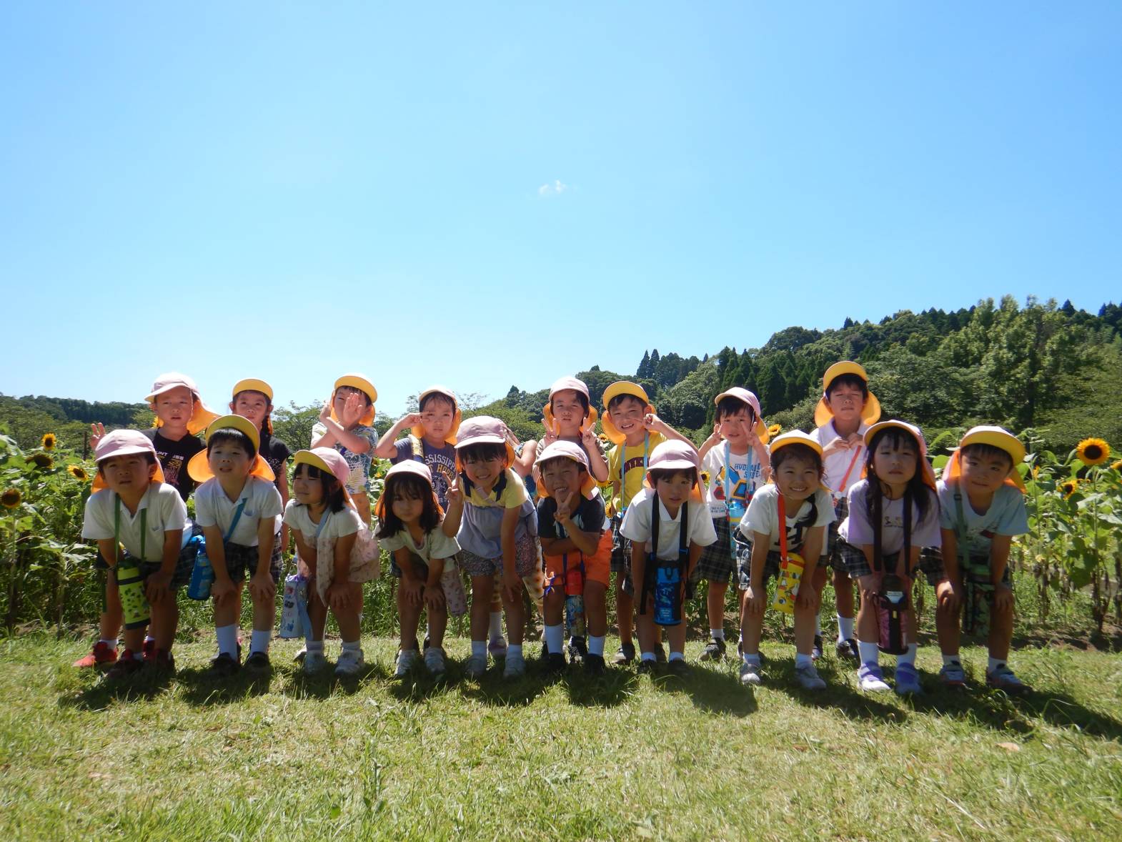 ヒマワリを見たり、みんなで写真を取ったりと大満足のきりん組さんでした。