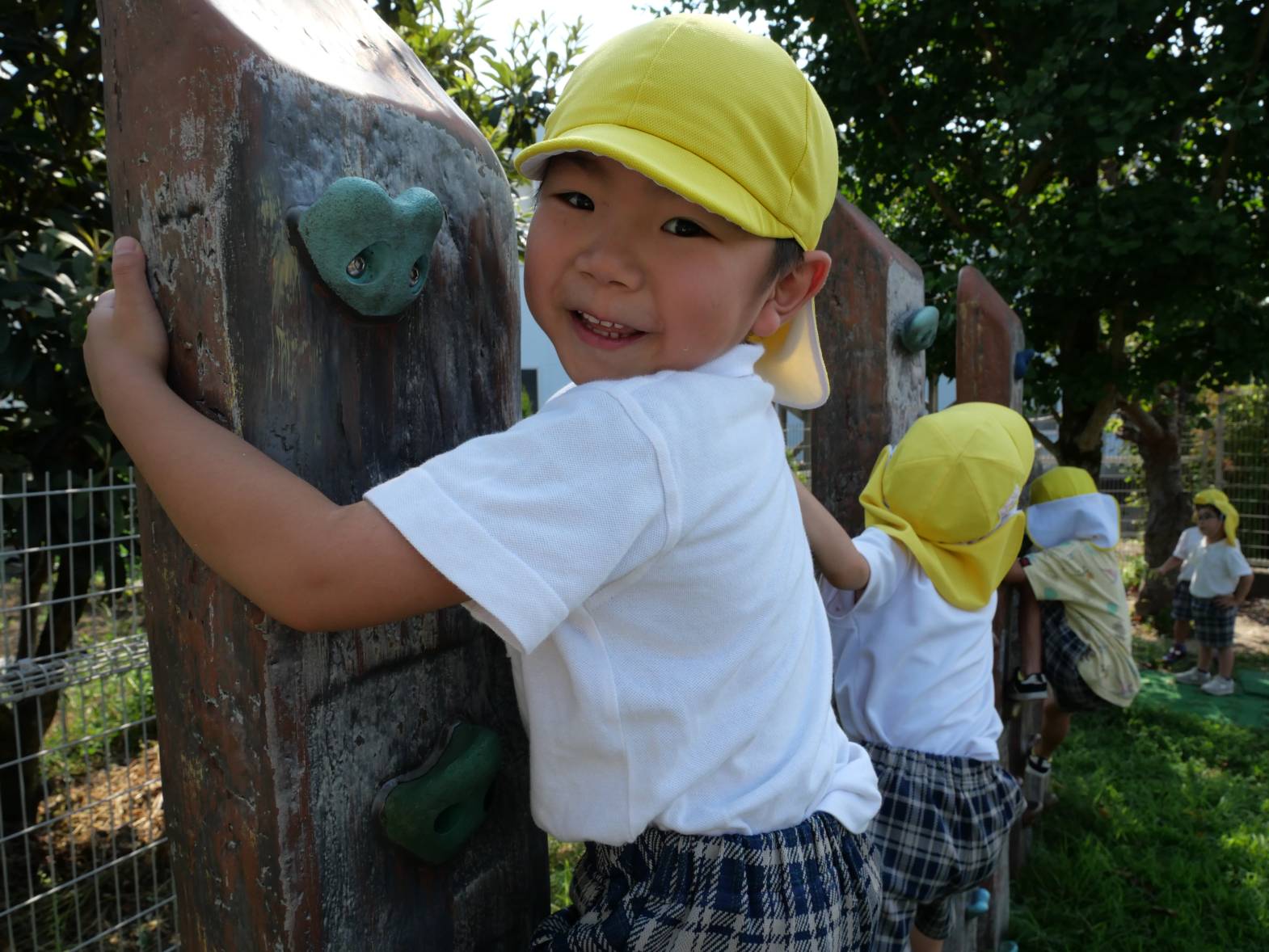 また、「先生見て!一番上まで登ることができたよ!」、「前は落ちていたけど、最後までゴールすることができた!」と、ロッククライミングや滑り台、鉄棒等の遊具で思い切り体を動かすことを楽しんでいる様子もあります。
