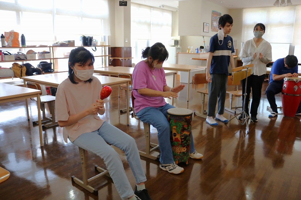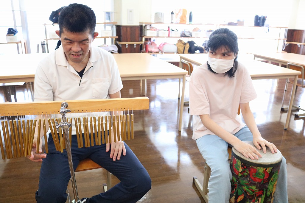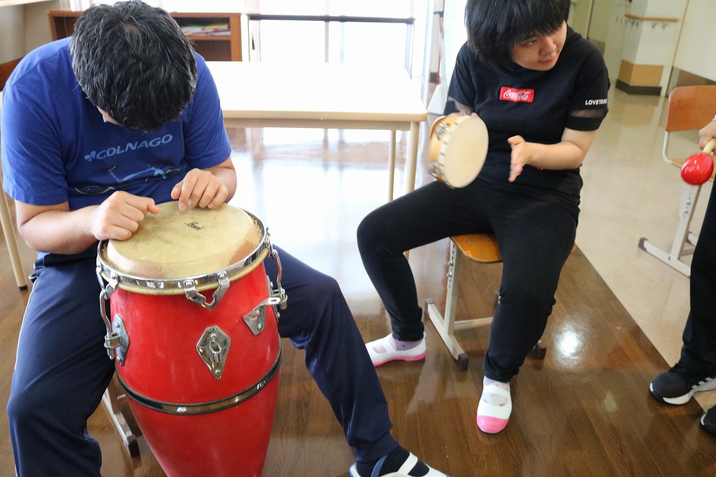 チャレンジデイにて、「楽器体験会」を行いました。 普段の音楽・バンド活動で担当されている楽器とは違い 新鮮な感覚を味わってもらえるような活動となりました。 時間いっぱい、様々な楽器に取り組んでおり、 たくさんの笑顔で盛り上がっていました。