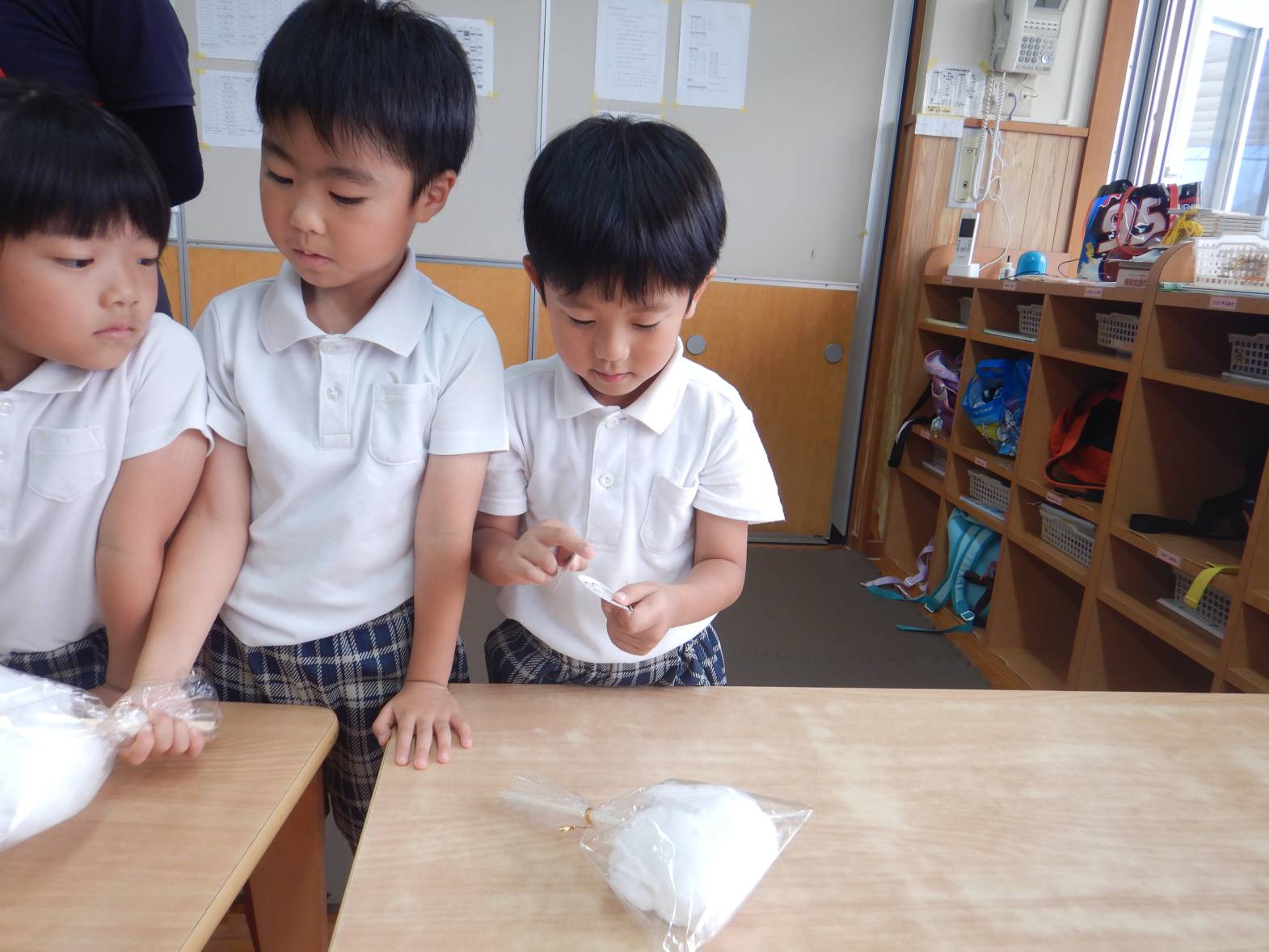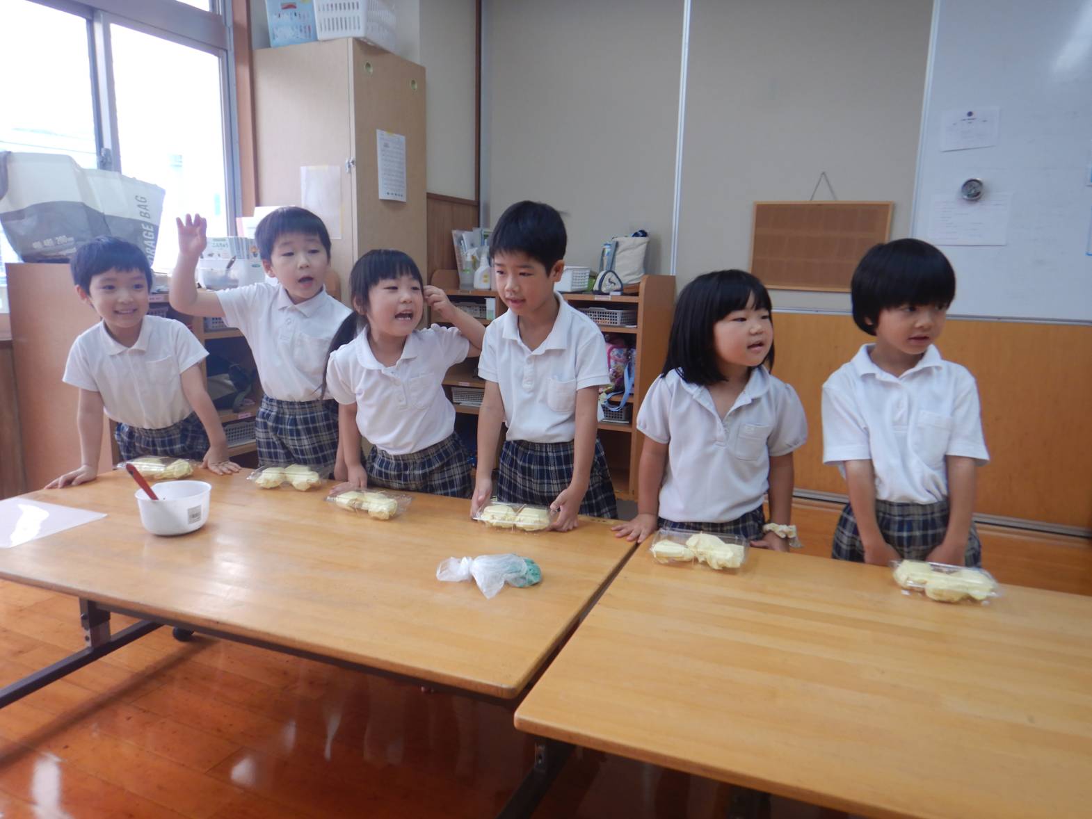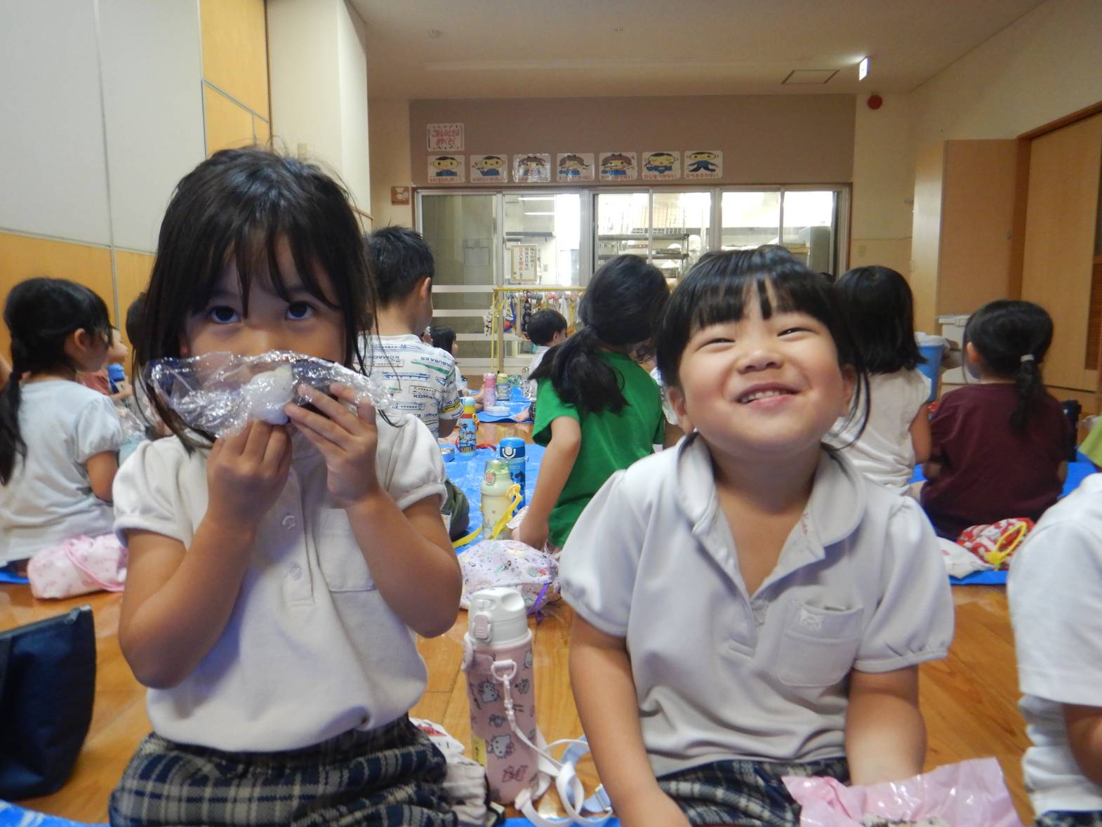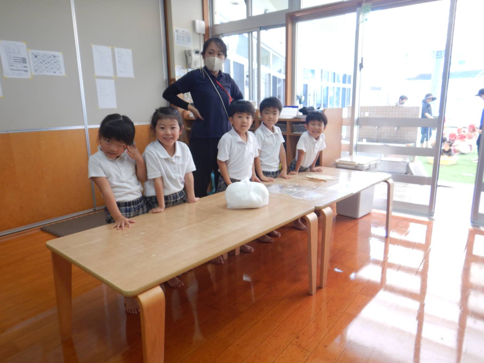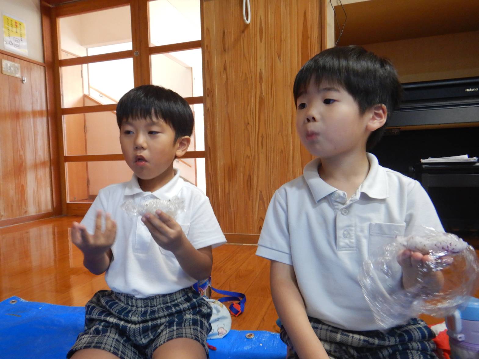 今日は子ども達が待ちに待ったおむすびの日でした。 「お店屋さん早くしたいね!」とウキウキな子どもたち。 りす組さんが買い物に来た際には「いらしゃいませ~」と元気よく呼び込む姿が見られました。 きりん組さん同士のお買い物では紙で作ったお金を使いました。 「100円玉が4個と。」「あと10円足りないよ!」と子どもたちで話す子どもたち。 おにぎりもたくさん食べて満足そうなきりん組さんでした。