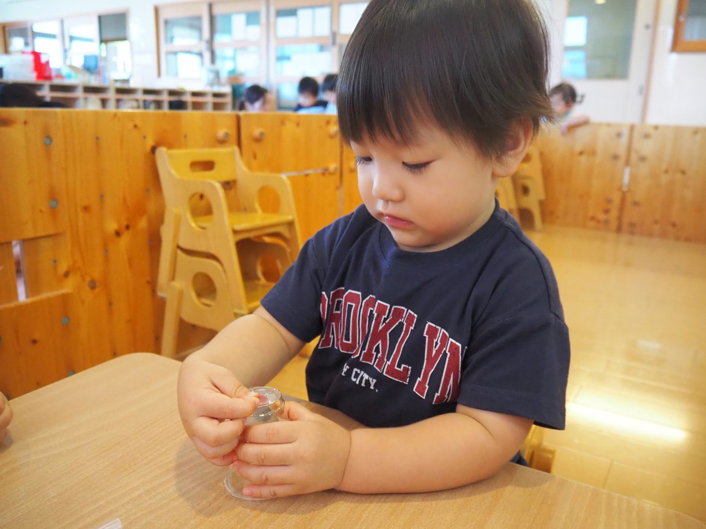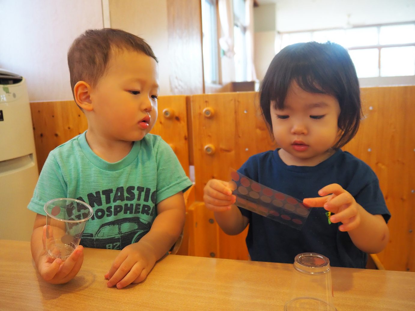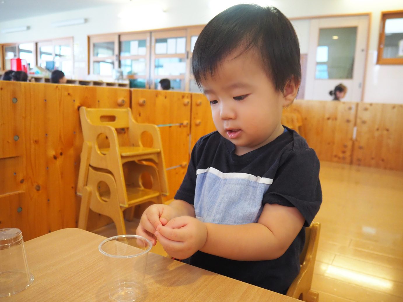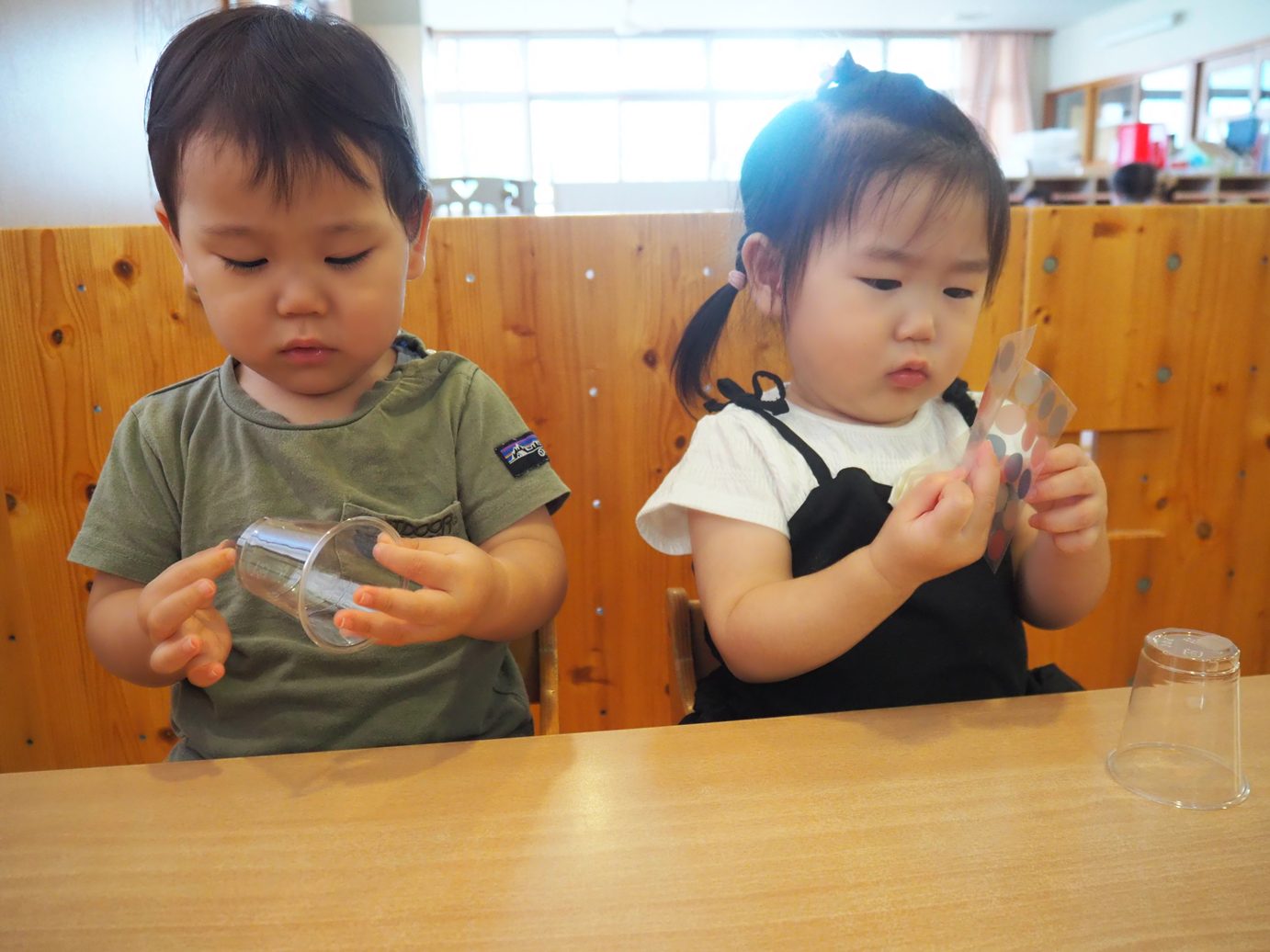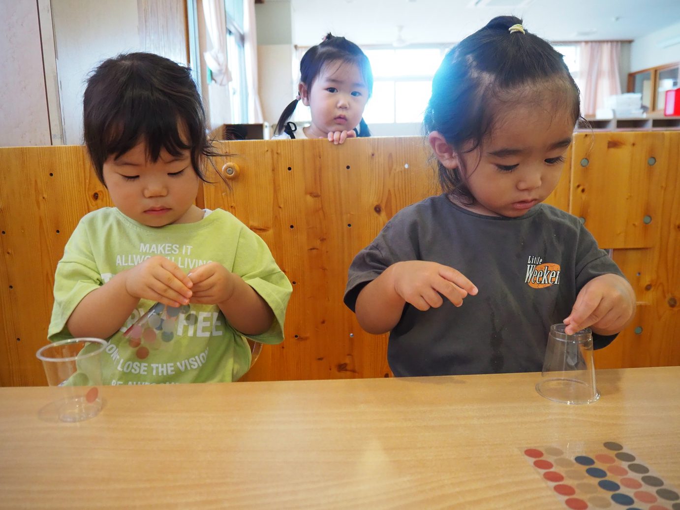 コップを渡してみると、すぐに興味津々の子どもたち。
