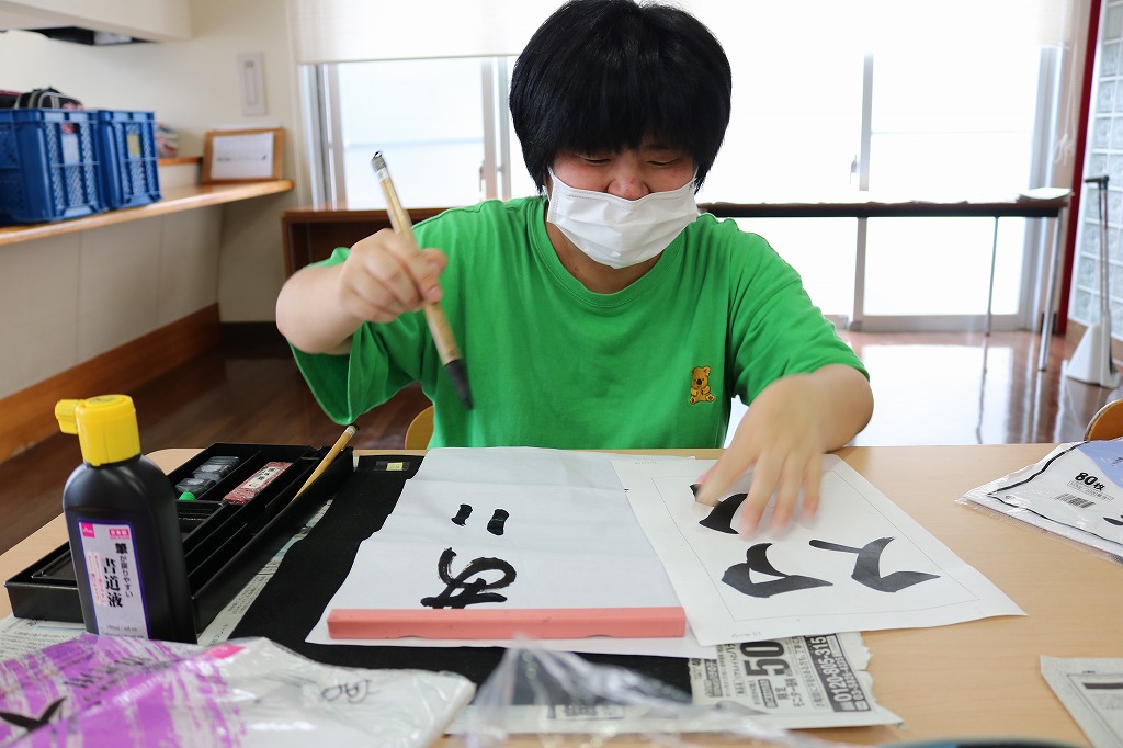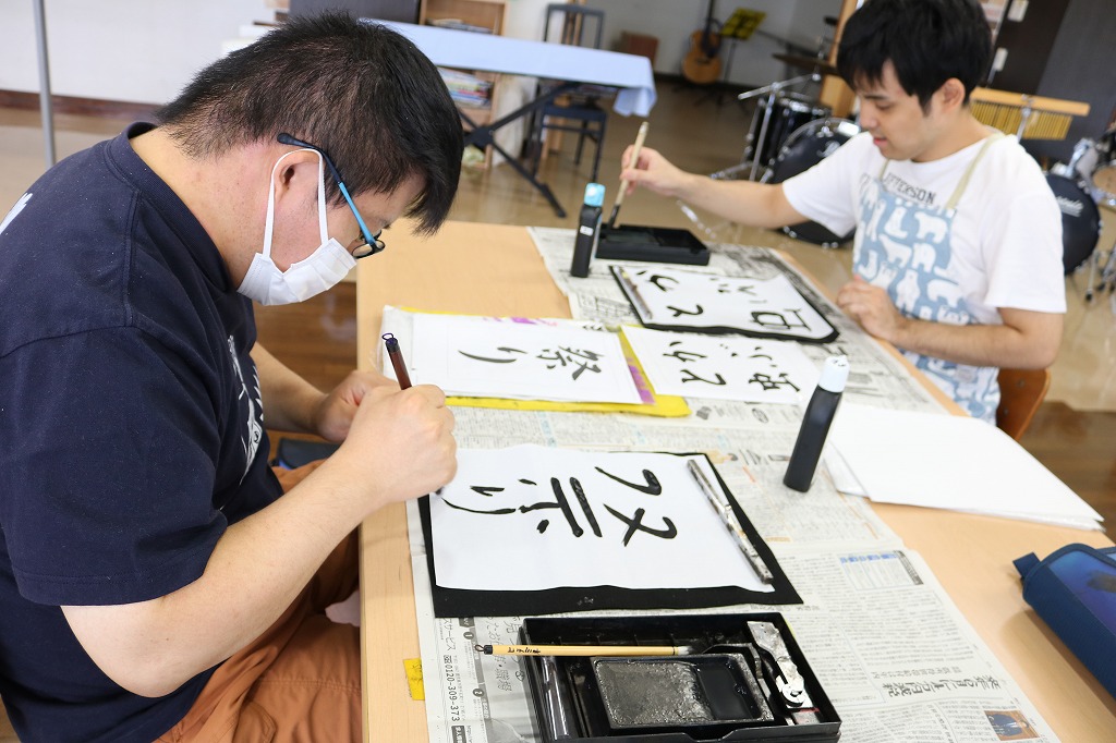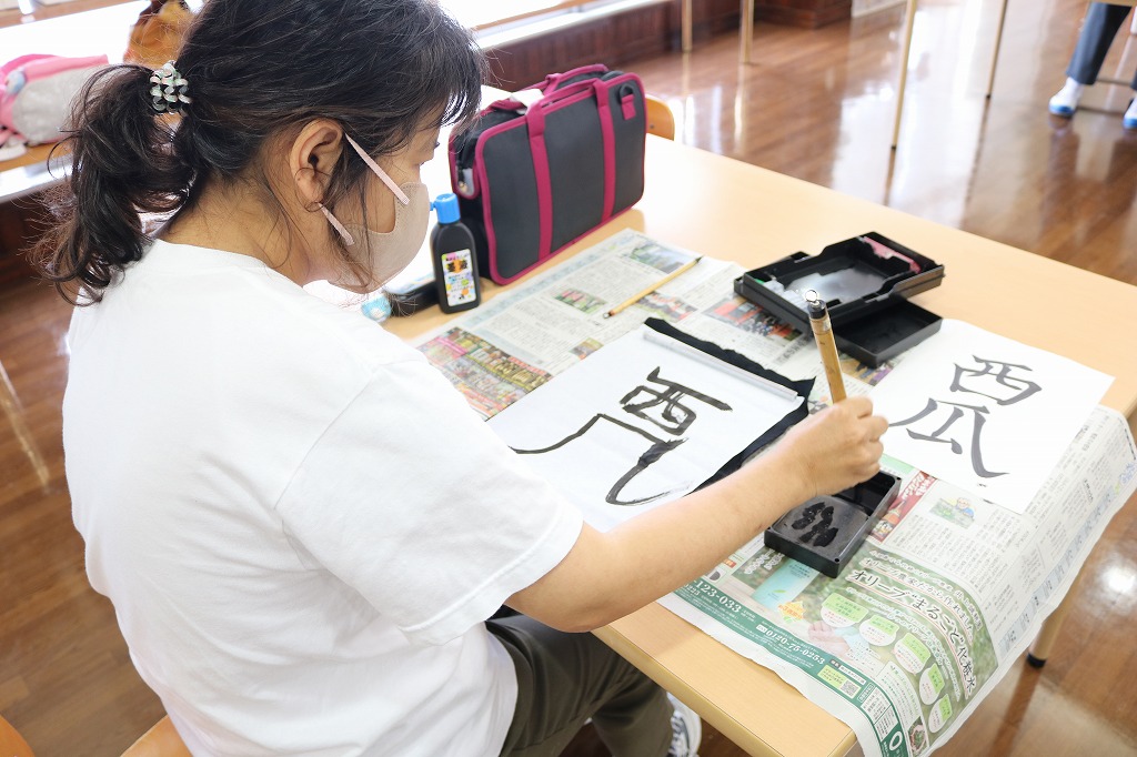 8月の書道を行いました。 季語である「たいよう」「スイカ」などを書いたり、 自由に毛筆を楽しむなどして、過ごされていました。 今年は特に暑さの厳しい8月ですが、 皆さんの笑顔で、夏の楽しさなど再認識できるような時間になりました。