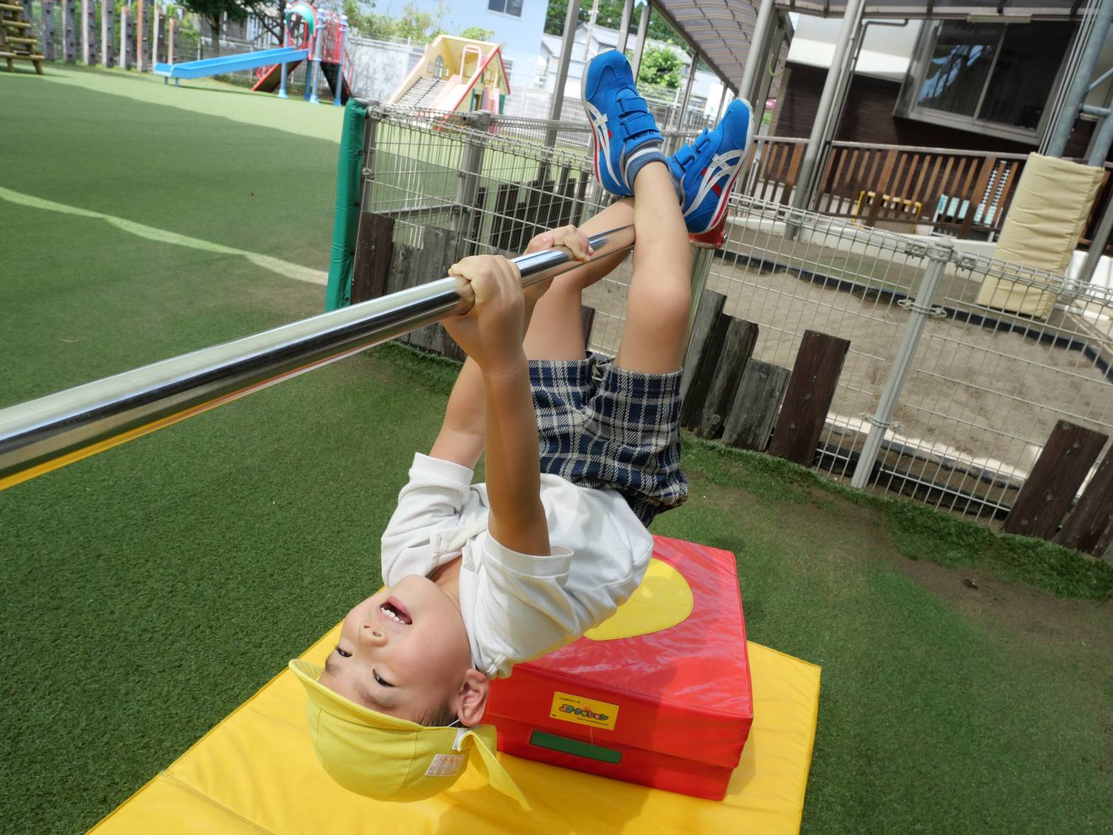 子どもたちがいつも楽しみにしている運動遊びがありました。 最初に整列や体操、マラソンをしていきます。「1、2、3、4!」と、大きな声で数を数えしっかりと準備運動をすることができました。 準備運動を終えると、鉄棒に挑戦していきます。今回の鉄棒では、前回りや逆上がり等をしました。「僕、前回り上手にできるようになったんだ。」。「逆上がりは、逆さまになるから面白い!」と、楽しみながら鉄棒に取り組むことができたうさぎ組さんです♪