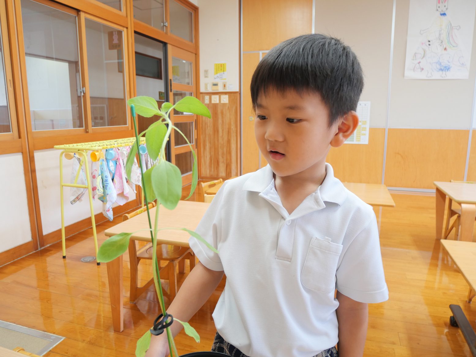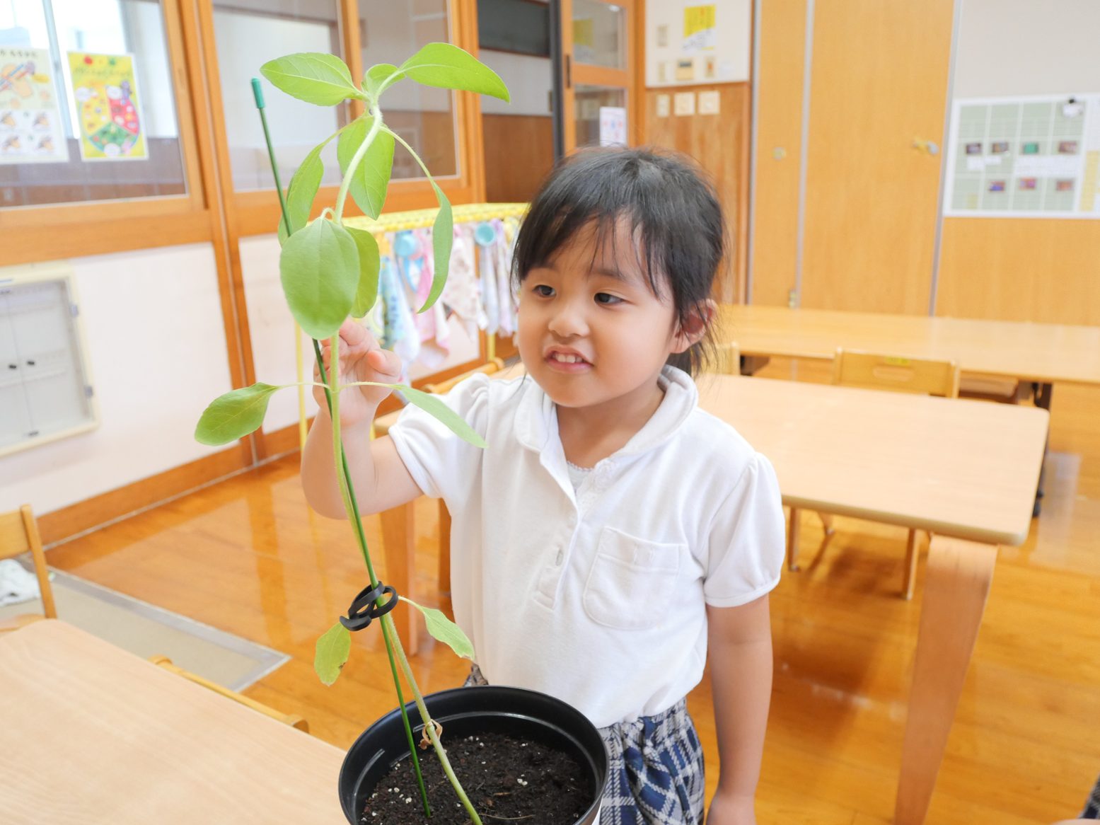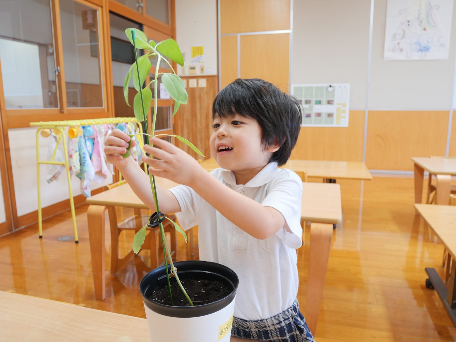 毎日の水やりでは、「おはよう。」「また大きくなった?」と声を掛けながら水をあげる姿が見られます。