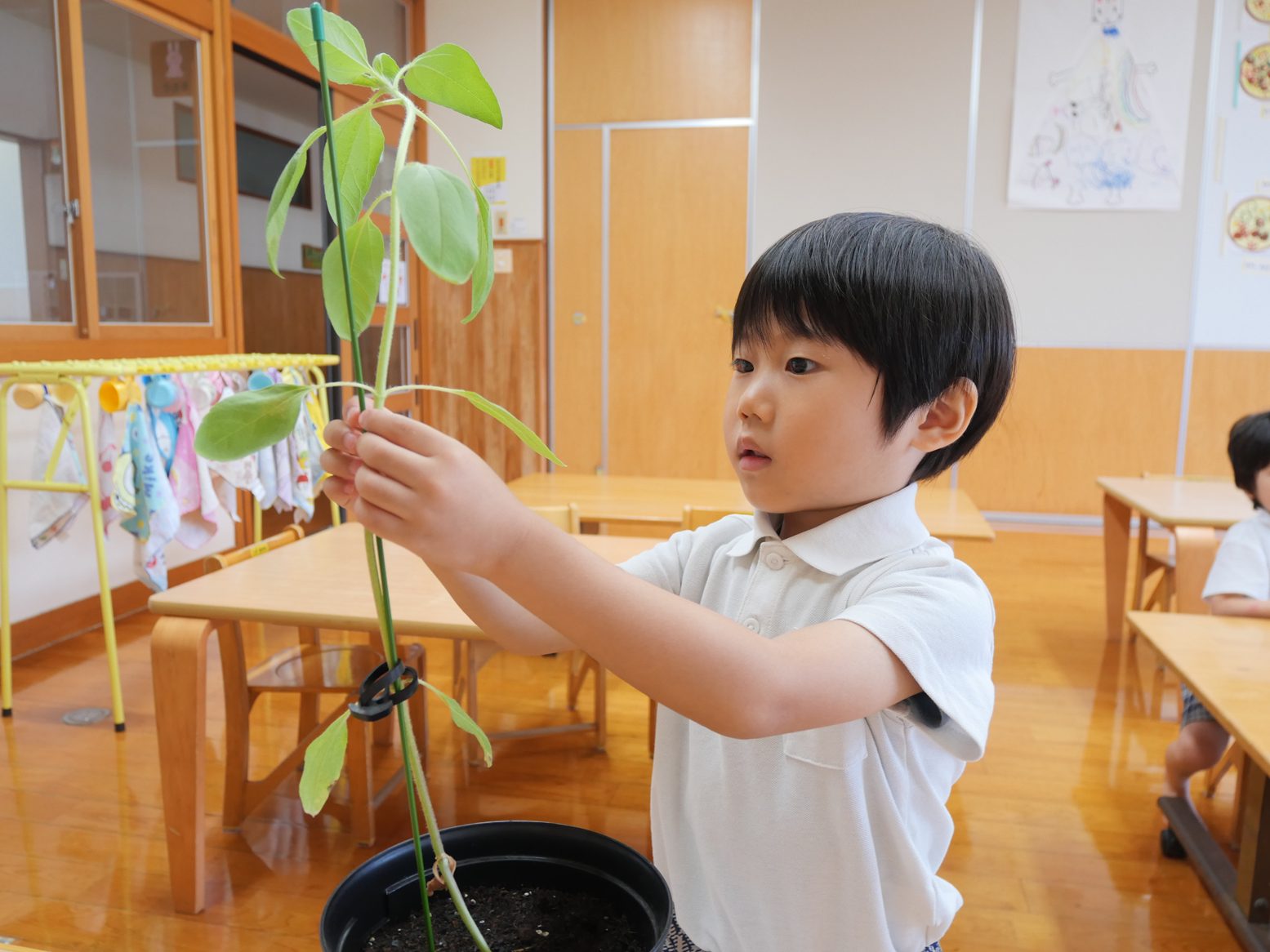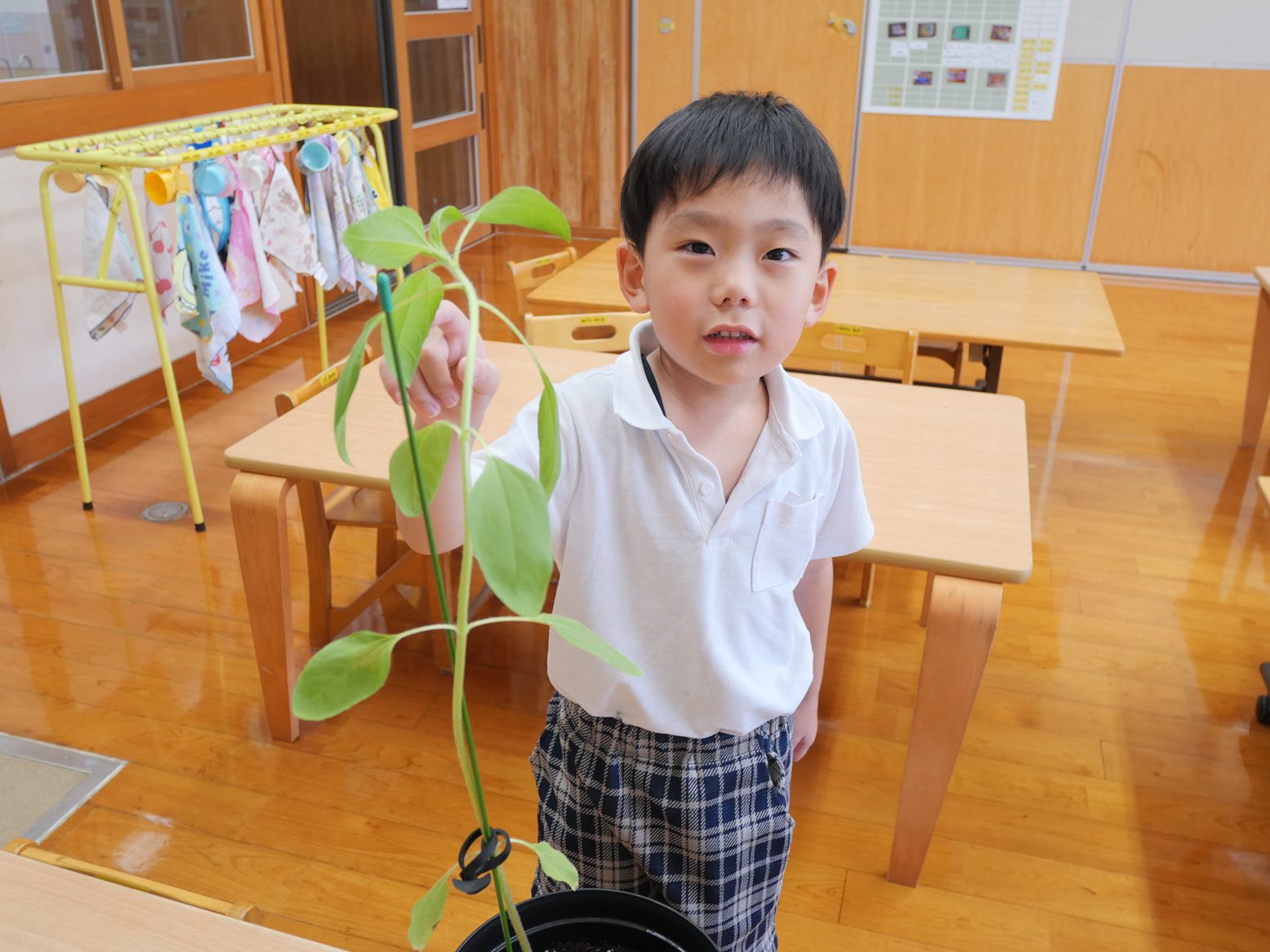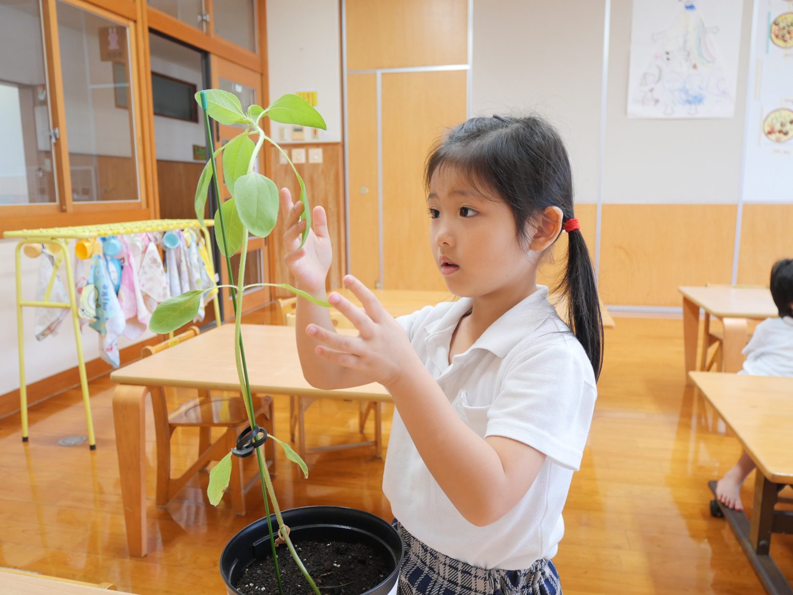 毎日の水やりでは、「おはよう。」「また大きくなった?」と声を掛けながら水をあげる姿が見られます。