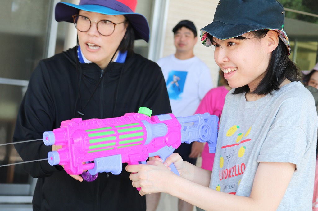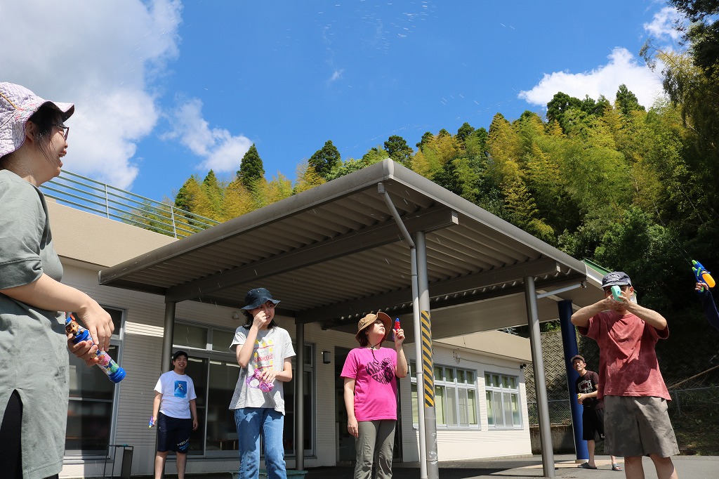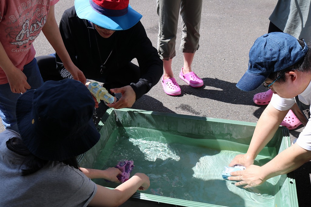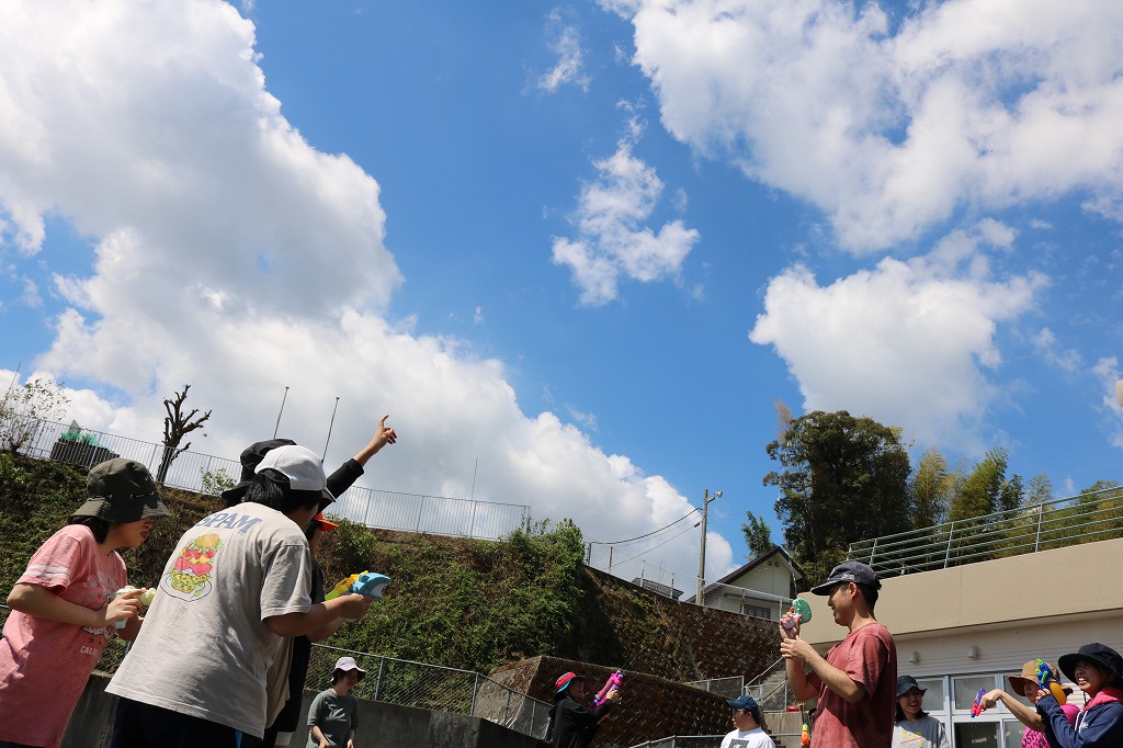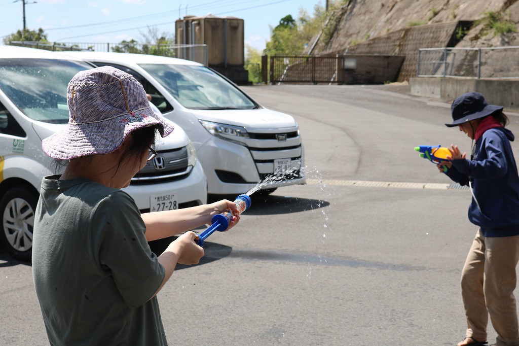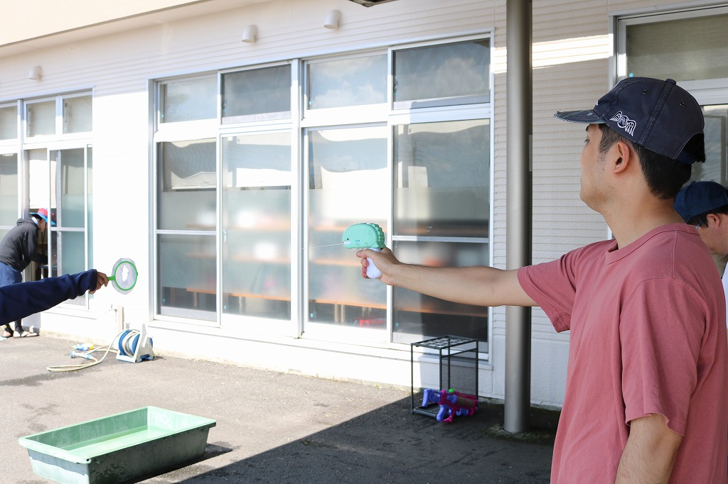 本日は、水鉄砲を使った遊びを皆さんと行いました。 初めに、皆さんが準備してきてくれた道具を確認しました。 待ち遠しくてワクワクしているのが伝わってきます。 準備ができたら、早速スタート! ルールを確認して、的当てを行いました。 的当ての次は、時間いっぱい自由に遊んで過ごしました。 来週は、第2回を予定しています。 また楽しい時間を過ごしましょう!