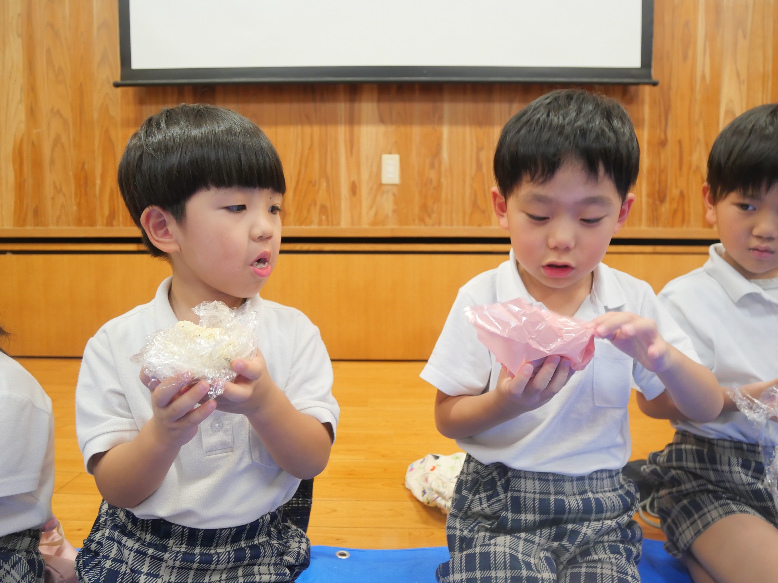 保育園に戻ってきたら、楽しみにしていたおむすびの時間!
