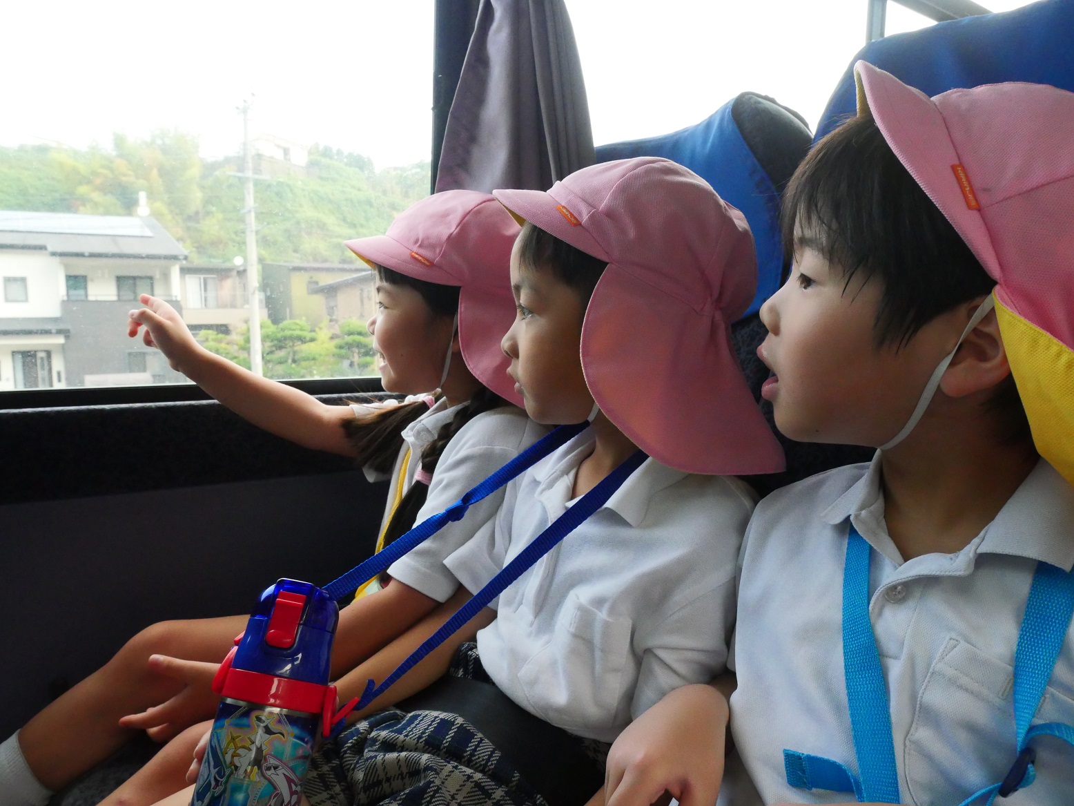 バスに乗ると「わあー、私の家の近くだ。」「あそこのお店行ったことあるよ!」と、友だちとの会話を弾ませる姿が見られました。