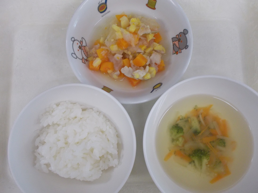 9月24日(火)から9月28日(土)までの給食献立写真・離乳食提供量と写真の一例です。